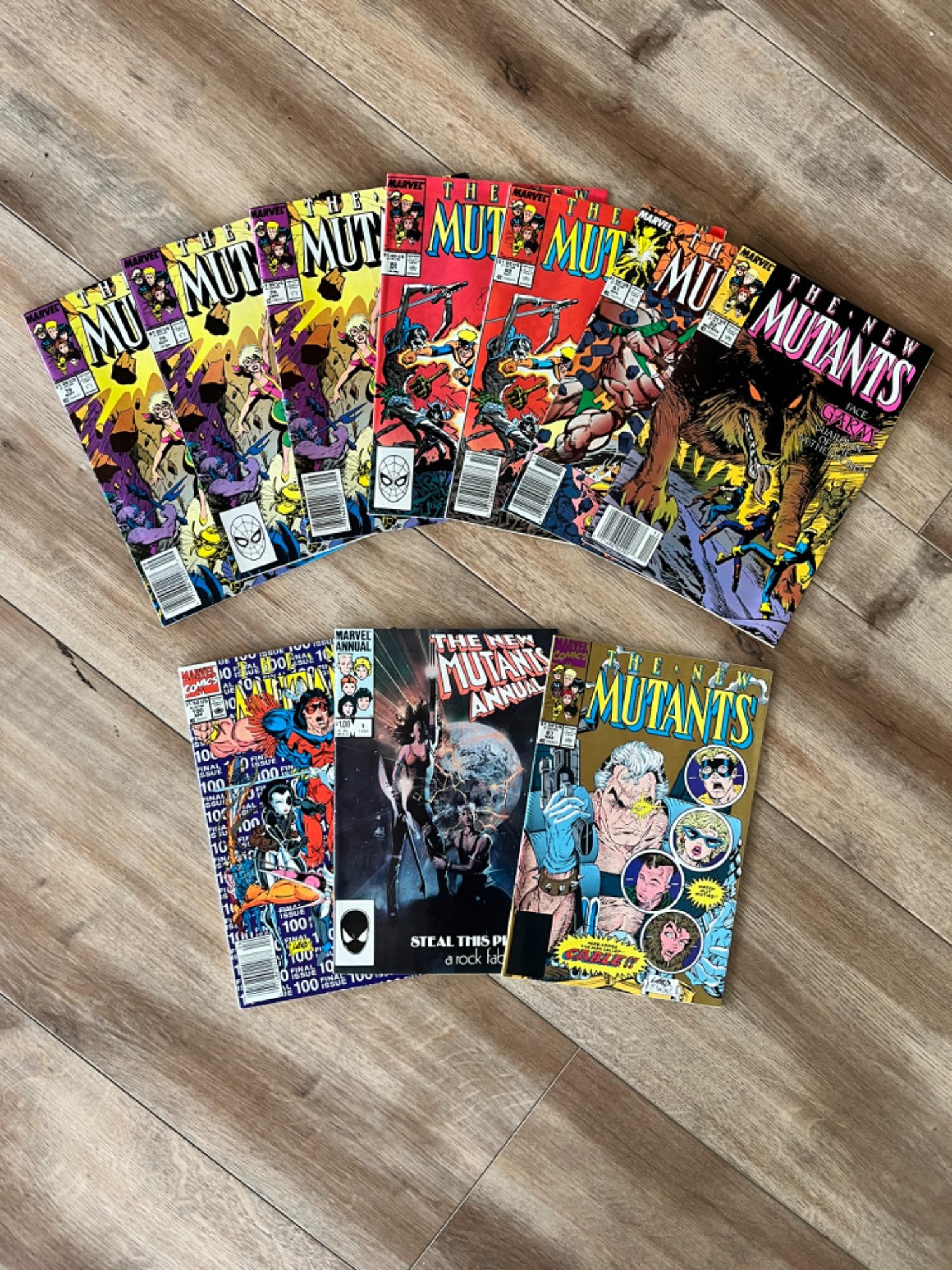 A collection of Marvel's The New Mutants comic book series including the 1st appearance of Cable (#87 2nd Print) and the 1st appearance of the X-Force (#100)! They are all in relatively good shape. The New Mutants #87 2nd Print (1st Appearance of Cable): roughly in VF condition The New Mutants #100 (1st Appearance of X-Force): roughly in VF - VF+ condition