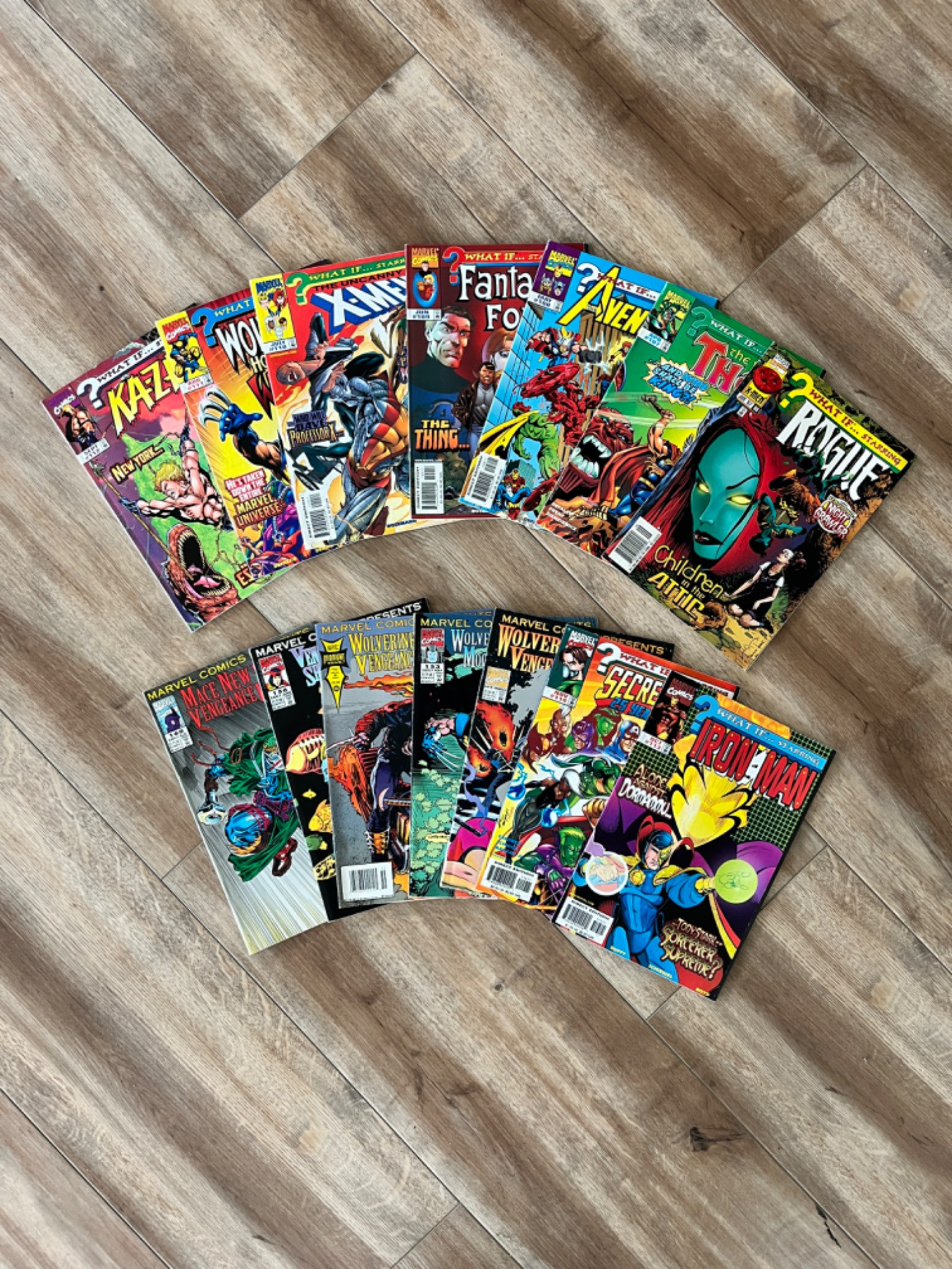 A collection of various issues of the Marvel What If... series! Conditions vary, with flaws pictured, but they are all good for reading with excellent coloring!