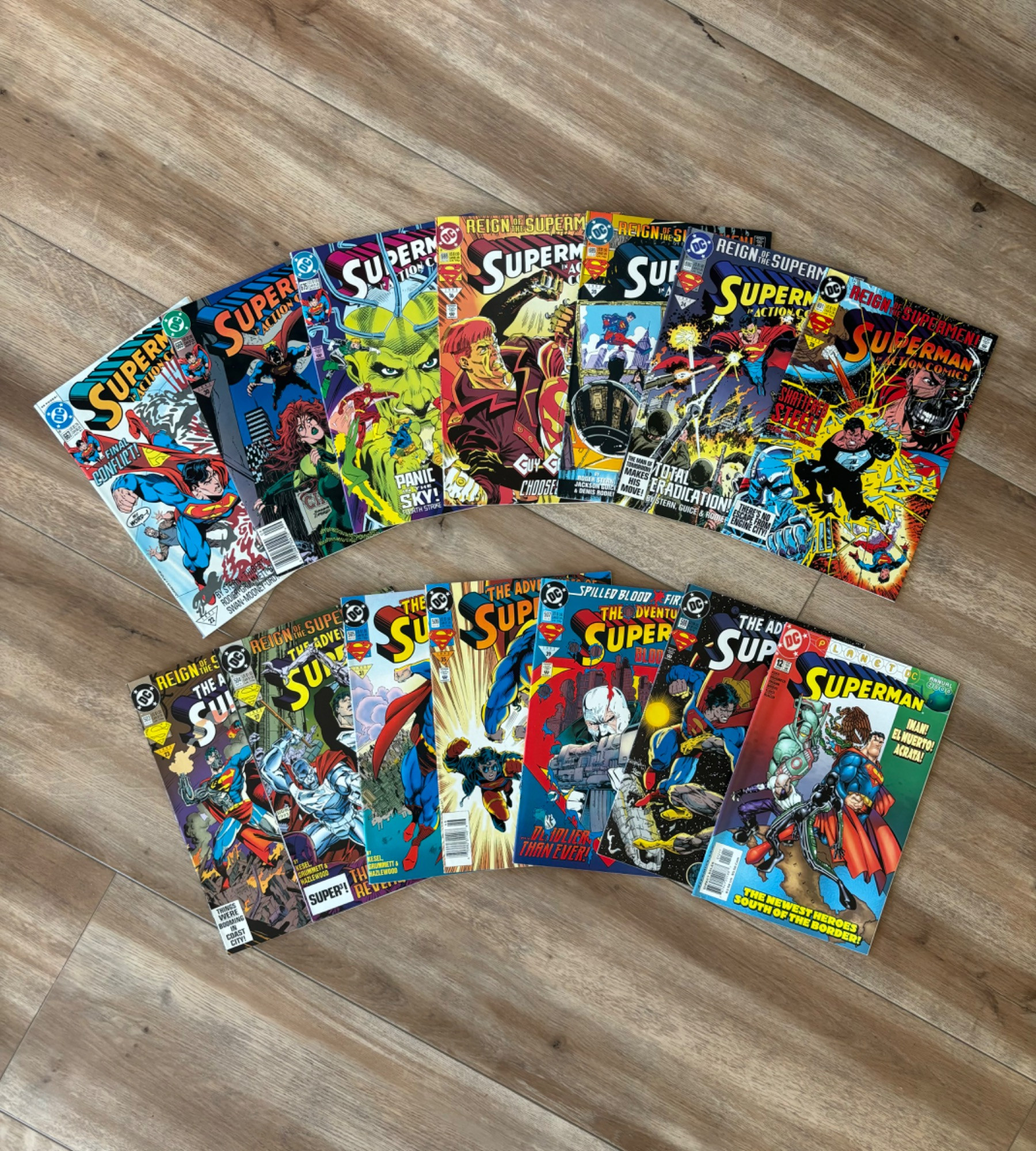 A collection of various issues of the DC character Superman! Conditions vary, but they are all good for reading with excellent coloring!