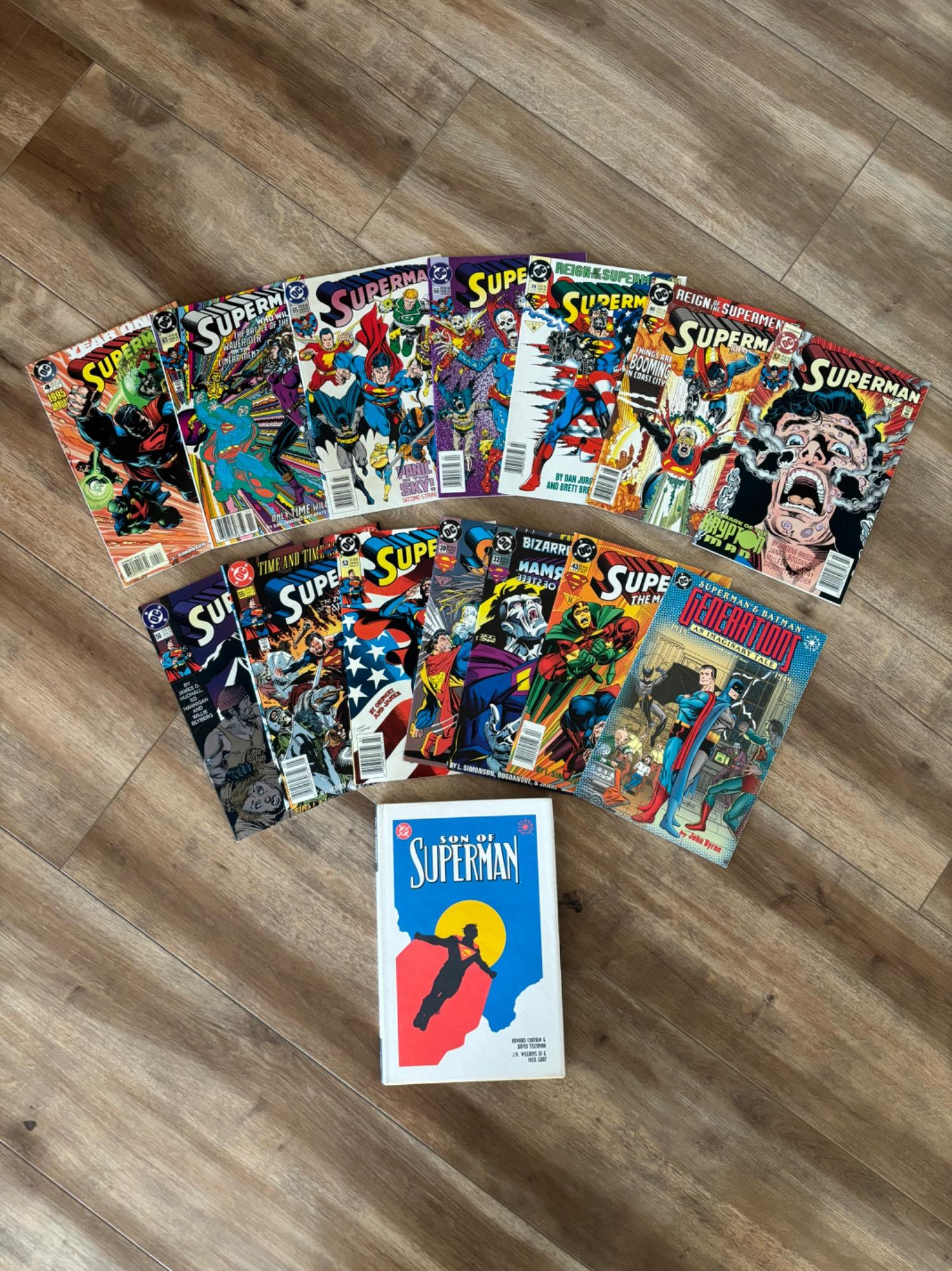 A collection of various issues of the Superman series. Conditions vary, but they are all good for reading with excellent coloring!