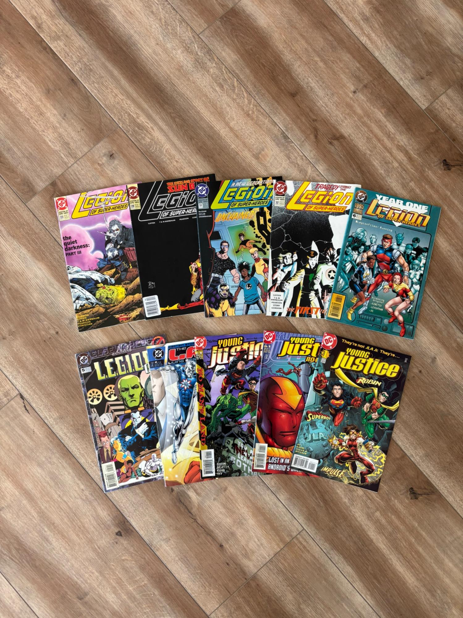 A collection of various issues of the Young Justice and Legion of Superheroes series. Conditions vary, but they are all good for reading with excellent coloring!