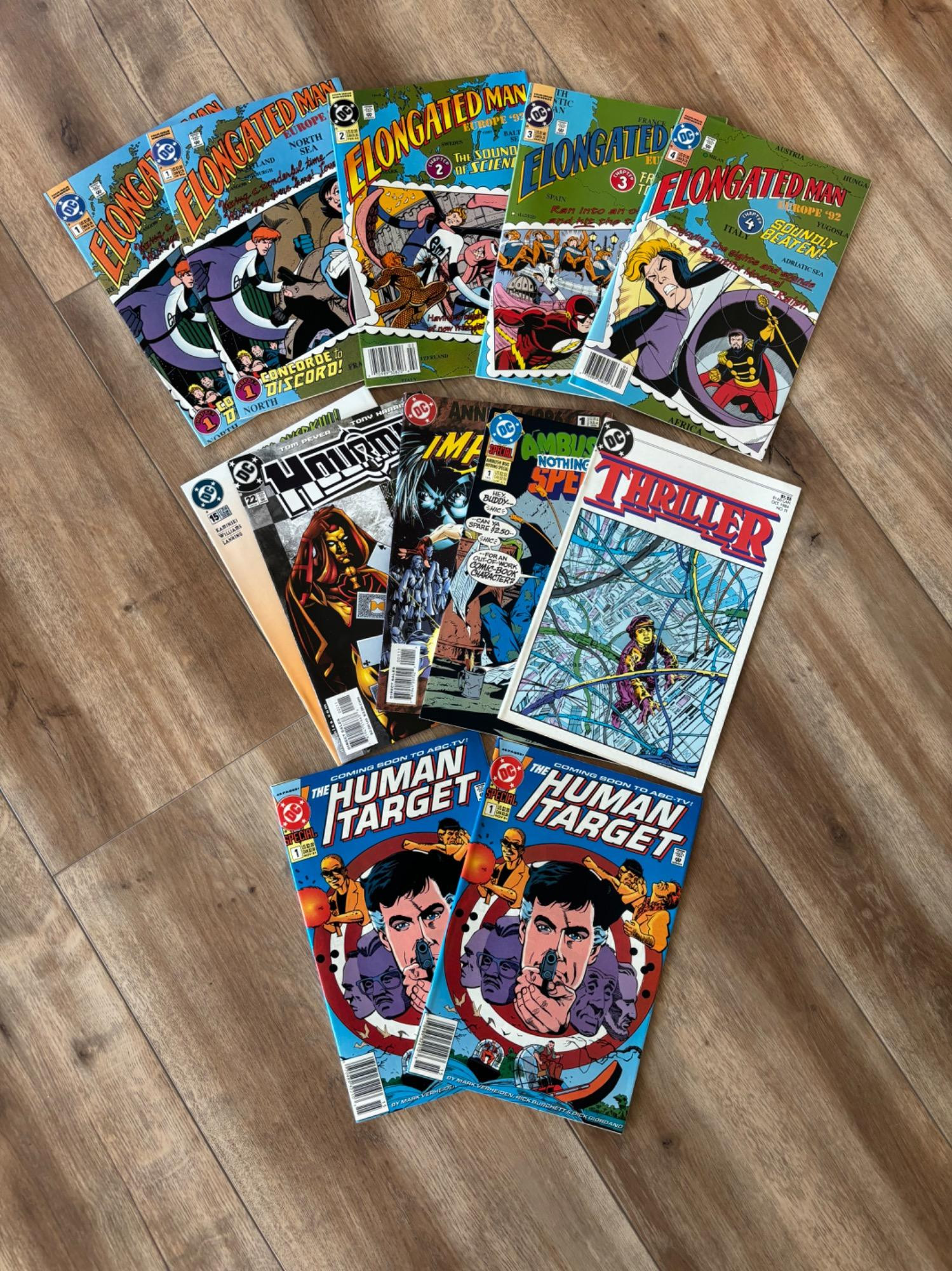 A collection of various issues of DC characters like Elongated Man, Human Target, and more! Conditions vary, but they are all good for reading with excellent coloring!