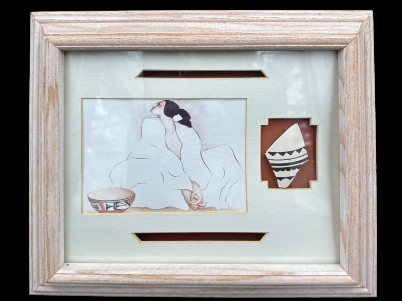 Lot # 67 - Vintage RC Gorman Framed "Zia" Art Print w/Pottery Shard