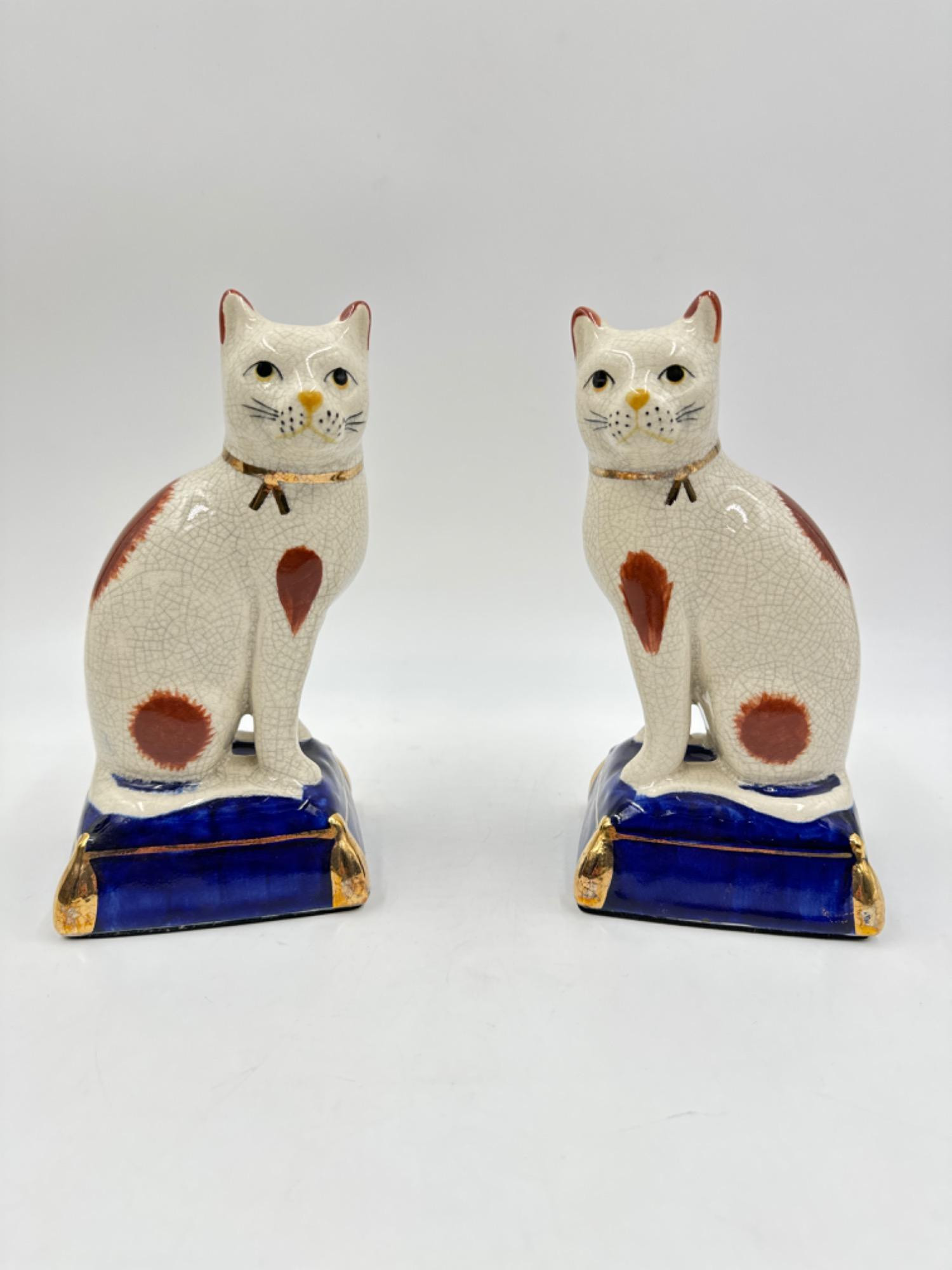 Vintage Fitz & Floyd Staffordshire Cat Bookends Both in excellent condition Measures: 7.5”T Base measures: 3.25" x 4"