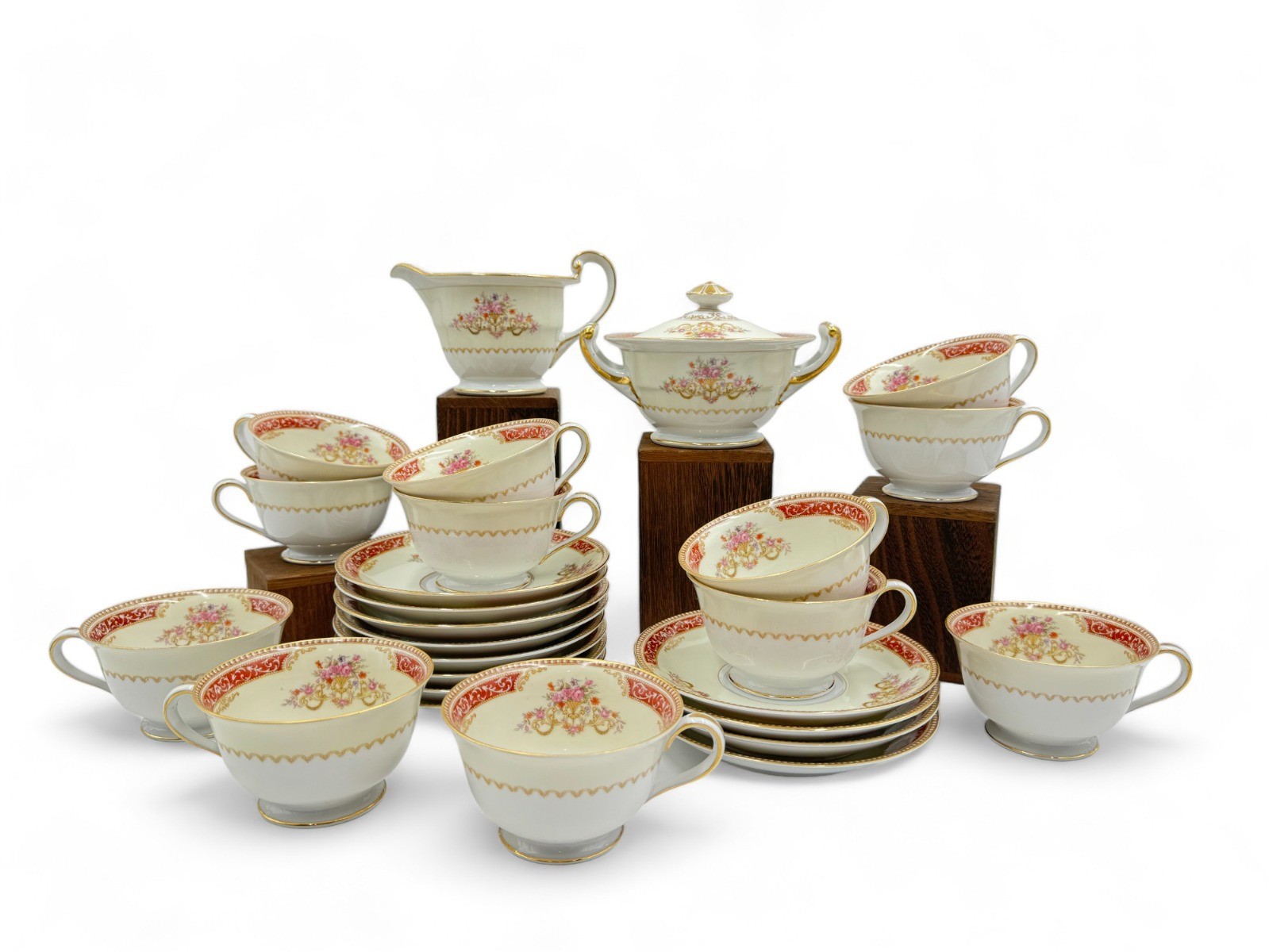 Lot # 92 - Occupied Japan Noritake Royal Ruby China Cups, Saucers, Creamer, Sugar