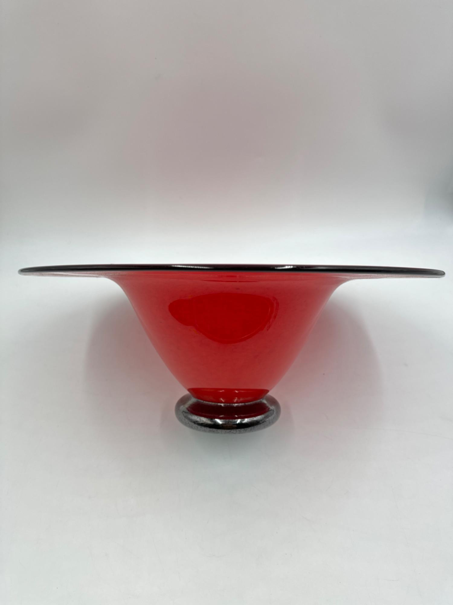 2013 Signed Dehanna Jones Hand Blown Red Art Glass Bowl Measures: 15.25"D x 5.75"T Excellent condition