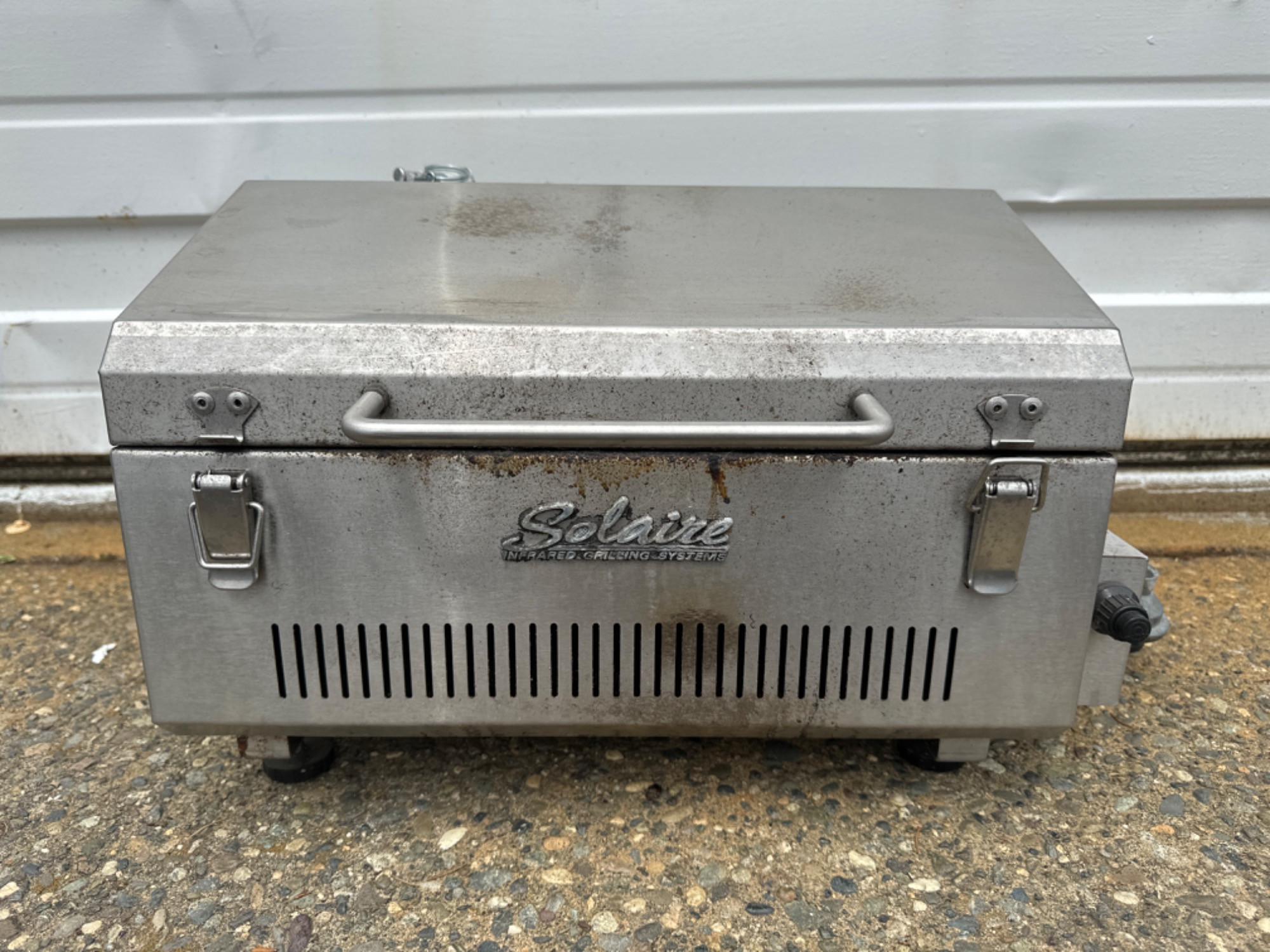 Solaire Anywhere Portable Infrared Propane Gas Grill Untested Needs new interior grill and cleaning, handles are loose. Measures 7"L x 14"D x 12.25"T