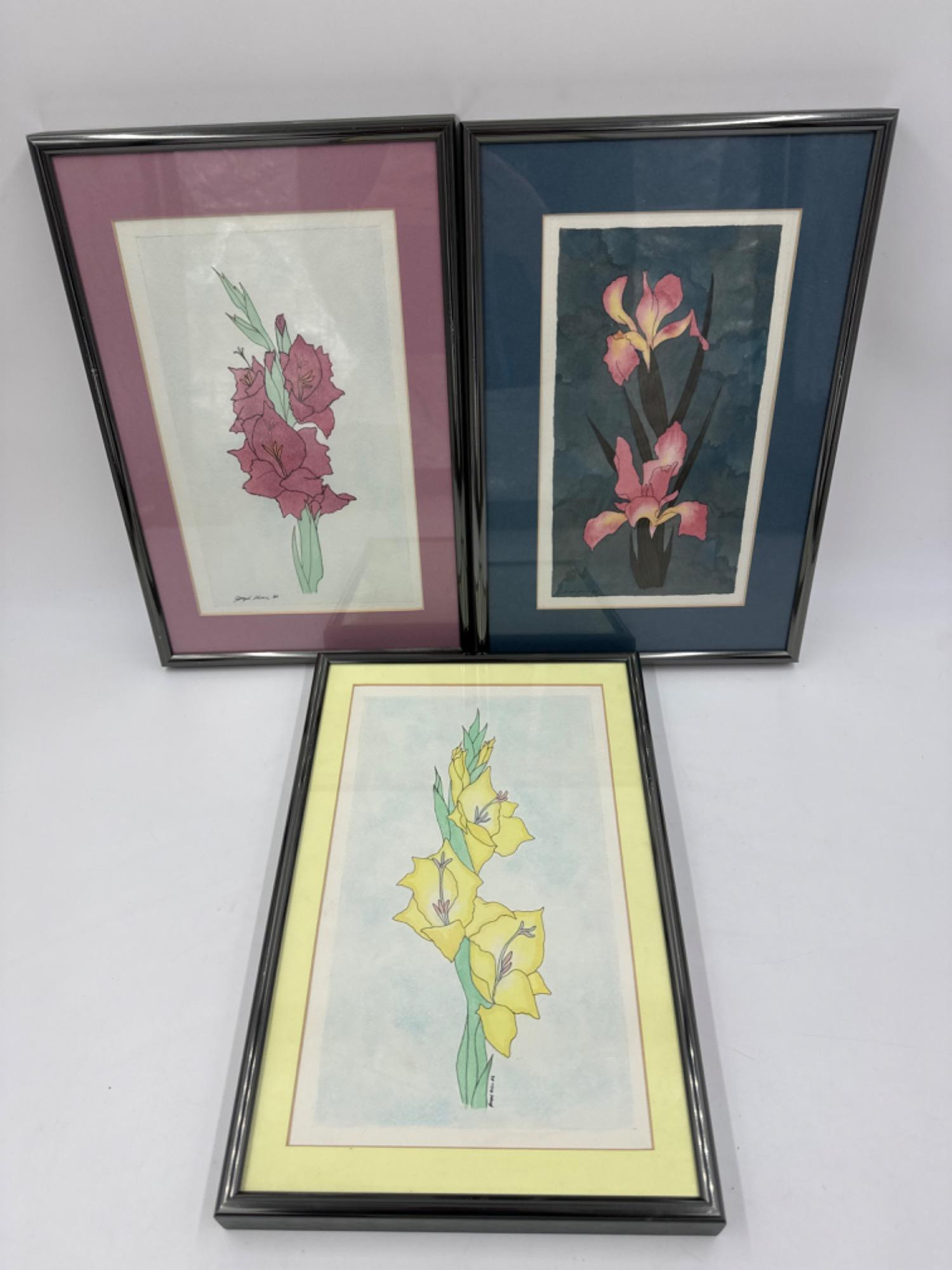 Lot # 157 - Vintage 80's Signed Original Watercolor Floral Art Trio - Gladiolus