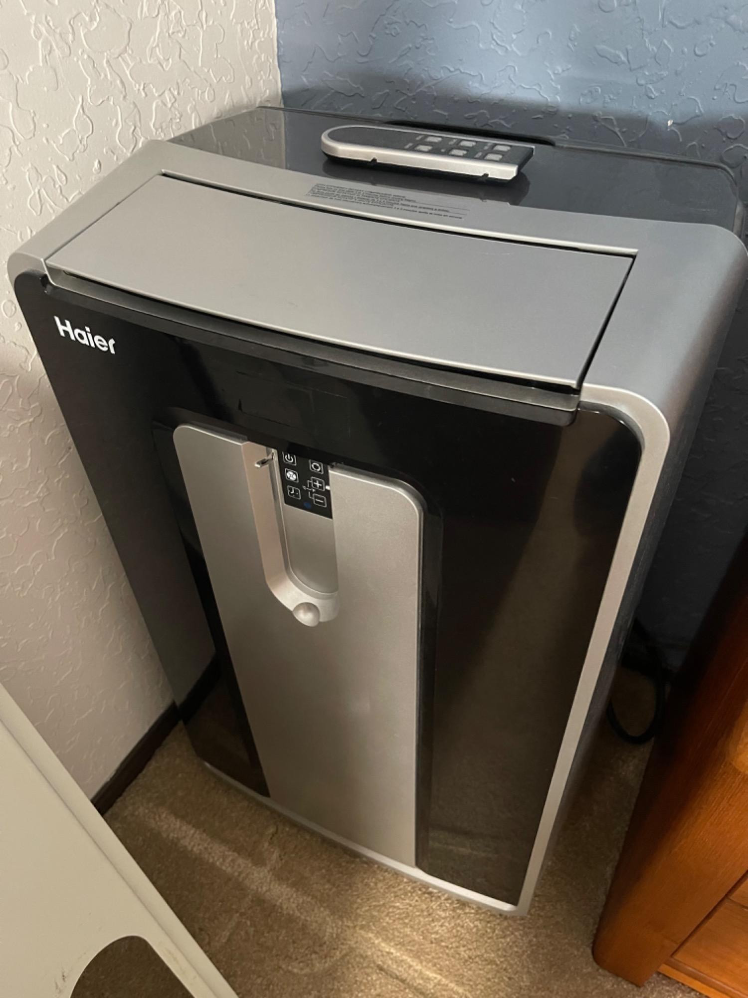 Haier Portable Air Conditioner With Remote.Comes with window adapter and vent Runs. Measures- 17.5 L x 28T x 13W