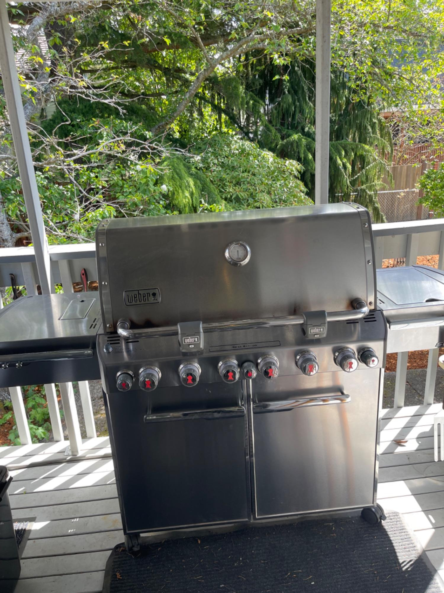 Stainless Weber Grill- Gas Hookup-Converts To Propane-Works. Please bring help to move. Good condition. You will need to buy the hookups to convert to propane, right is plumbed for natural gas. Includes the Grill Grates, after market. $200 per grill. Anodized aluminum 9 mm diameter solid stainless steel rod cooking grates Snap-jet individual burner ignition system Stainless steel Flavorizer bars Stainless steel lid Built-in lid thermometer Stainless steel side tables Grill cabinet with stainless steel doors LED fuel gauge Infinite control burner valves Grill Measures- 27D x 74 W x 51T
