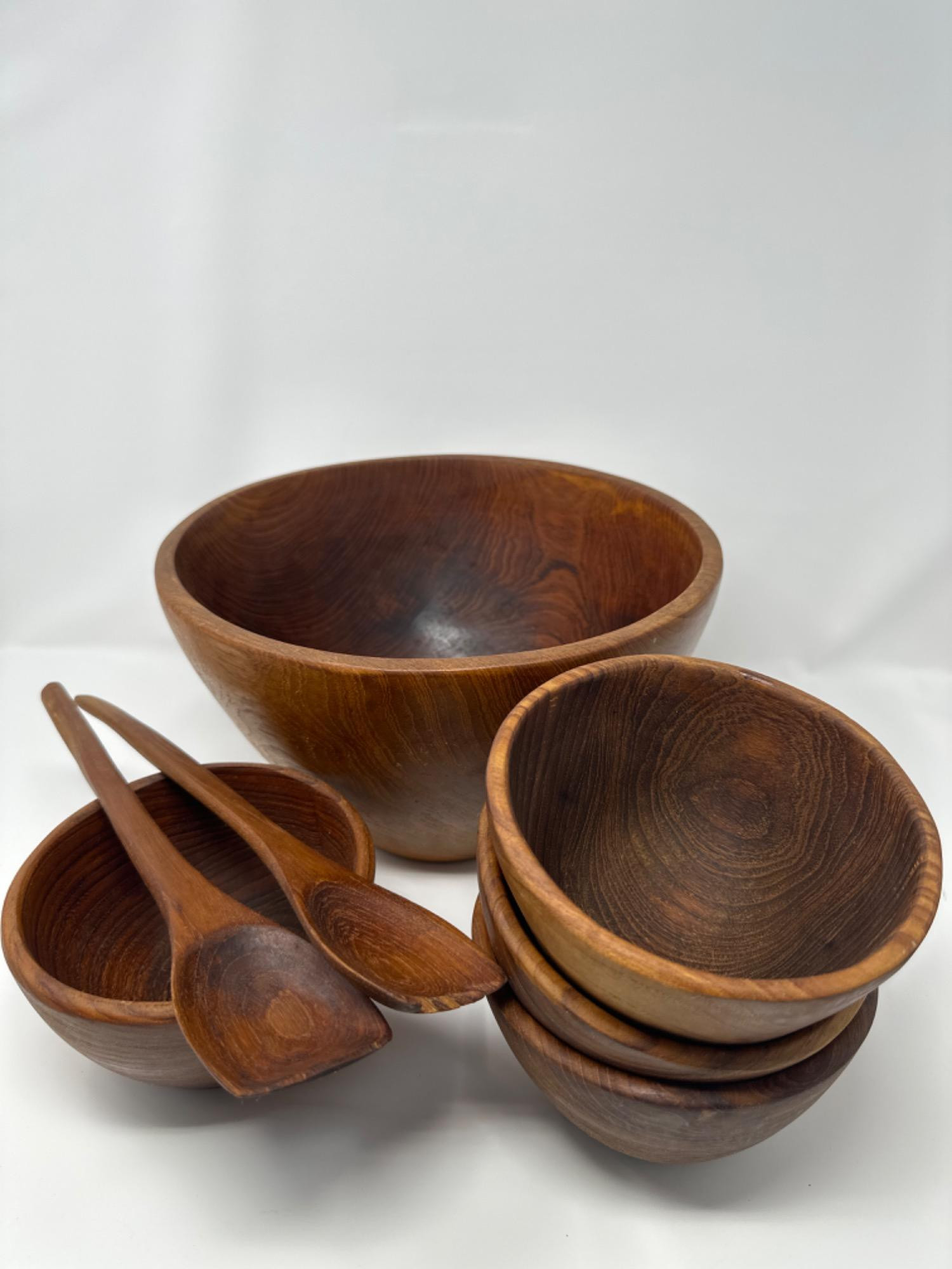 Danish Wood Salad Bowls With Wood Salad Servers.