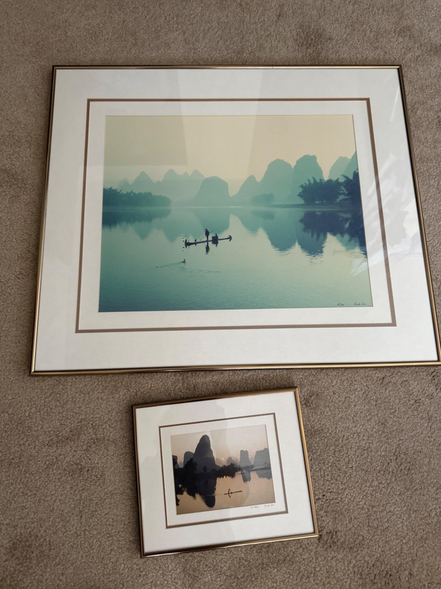 These are photographs by King Woo. The location is Guilin, China. The larger of the two photographs is 24 x 28 and the smaller one is 9 x 11. These are professionally framed and Matted. Larger is numbered 19/250 and smaller is 30/950- both are signed by the artist.