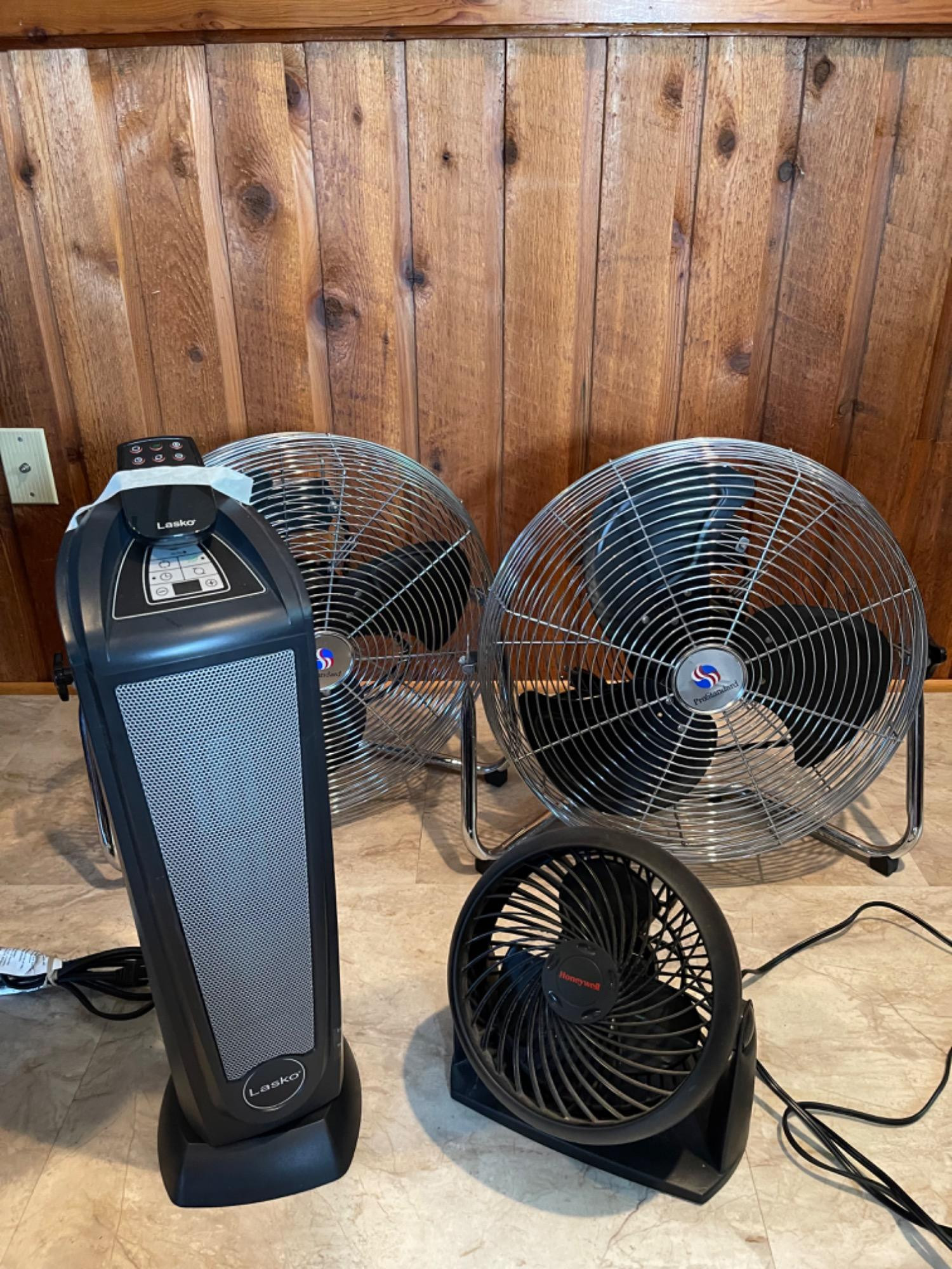 Three Fans and Lasko Heater.