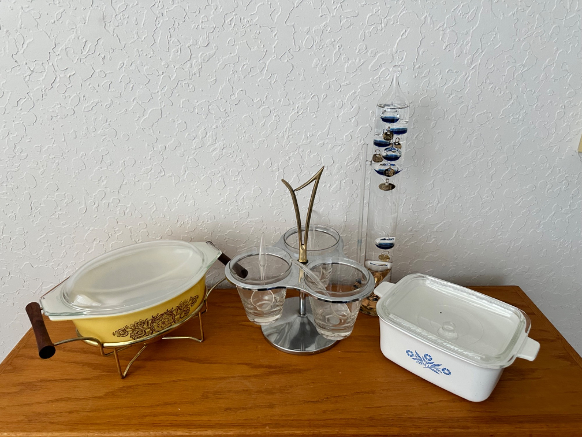 Lot # 96 - Mid Century Items-Pyrex Golden Rosette, Lazy Susan, Galileo and More