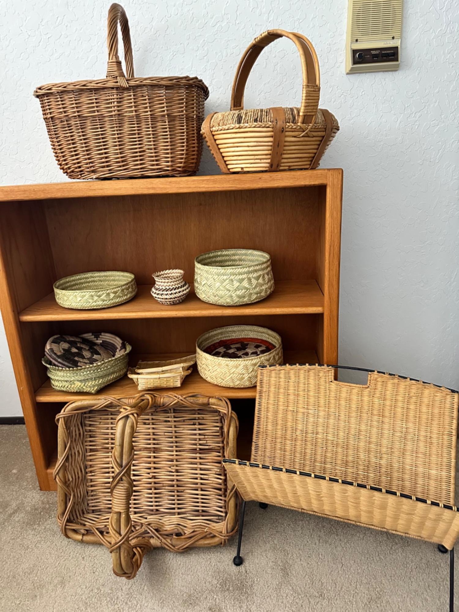A Variety Baskets and Woven Treasures. Magazine rack, hand woven baskets, hot pads and more. See pictures