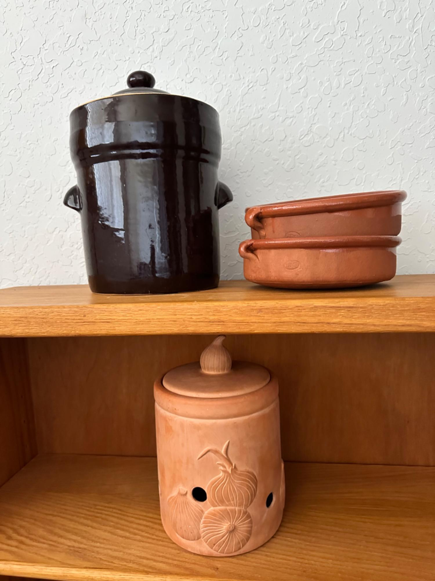 Sauerkraut Fermenting Crock, Onion Canister and Terra Cota Bowls