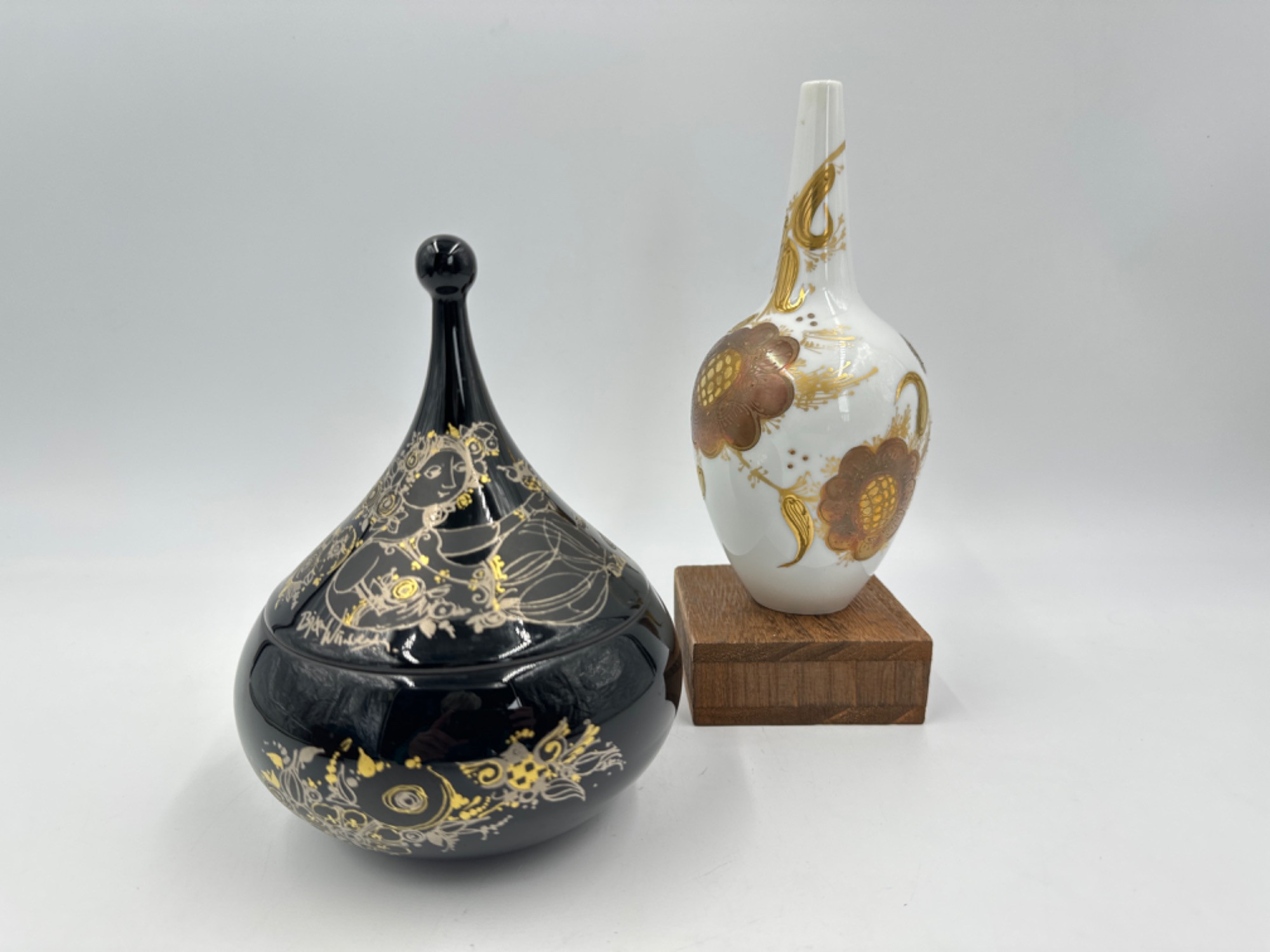 Vintage Bjorn Wiinblad for Rosenthal - Porcelaine Noire Lidded Dish & Quatre Couleurs Vase Lidded dish - 7.25"T Vase approx 6.25"T