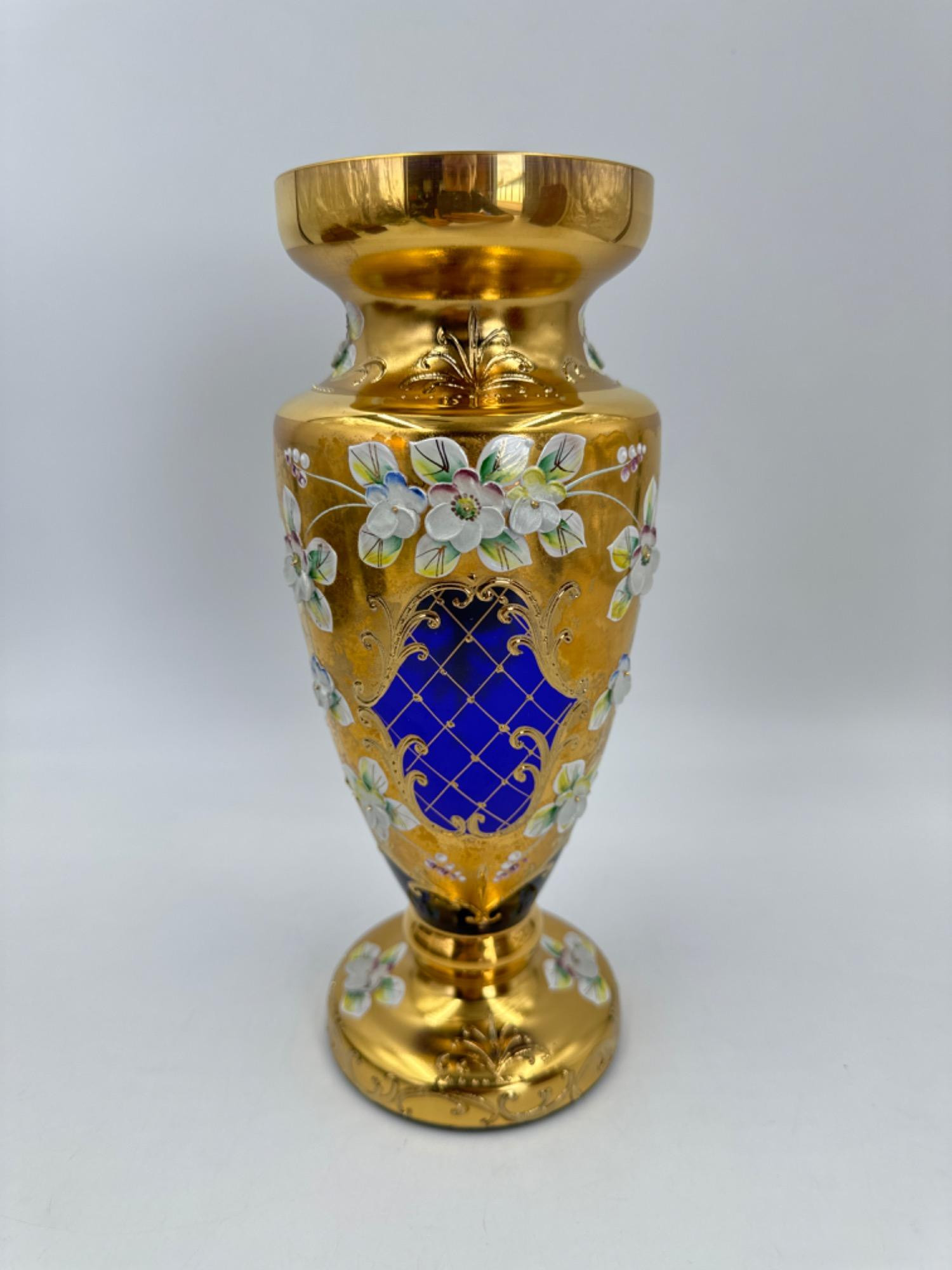Czech Bohemian Egermann Gold & Cobalt Blue Glass Vase LE 501/1000 Measures: 10” Free of nicks, chips, or cracks. Great condition. Comes with box.