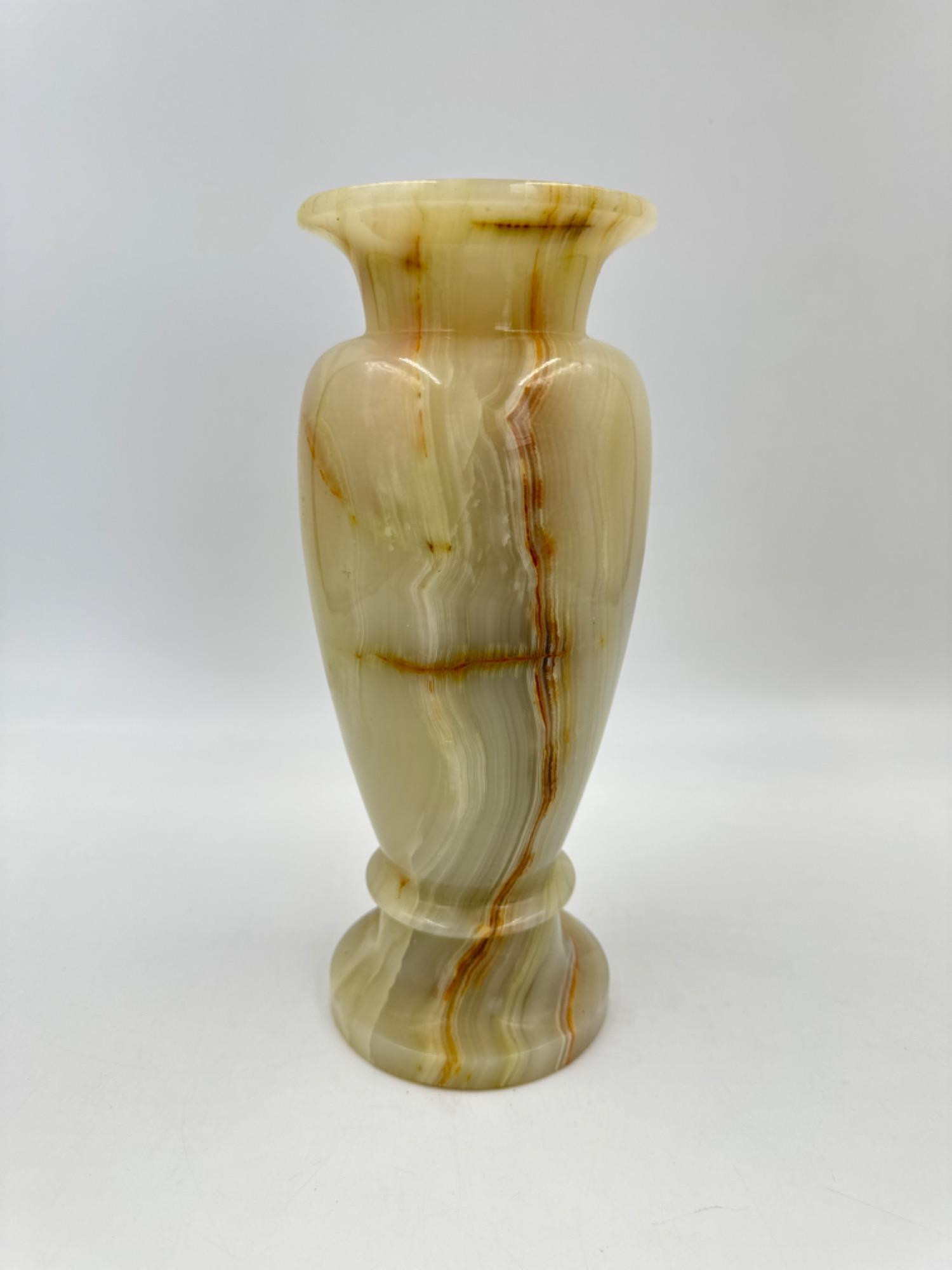Mid Century Banded Green Onyx Vase - 10"T Excellent condition