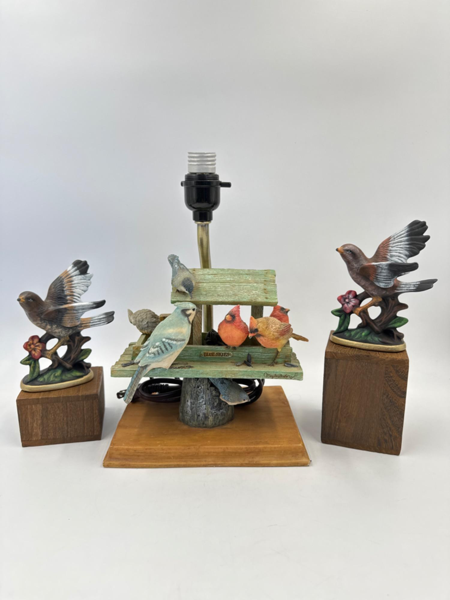 Ceramic Birds - 5" Hallmark Marjolein Bastin Resin Bird Lamp - Base measures: 7.75 x 6" - 12” tall One bird on back is missing a beak Lamp is untested