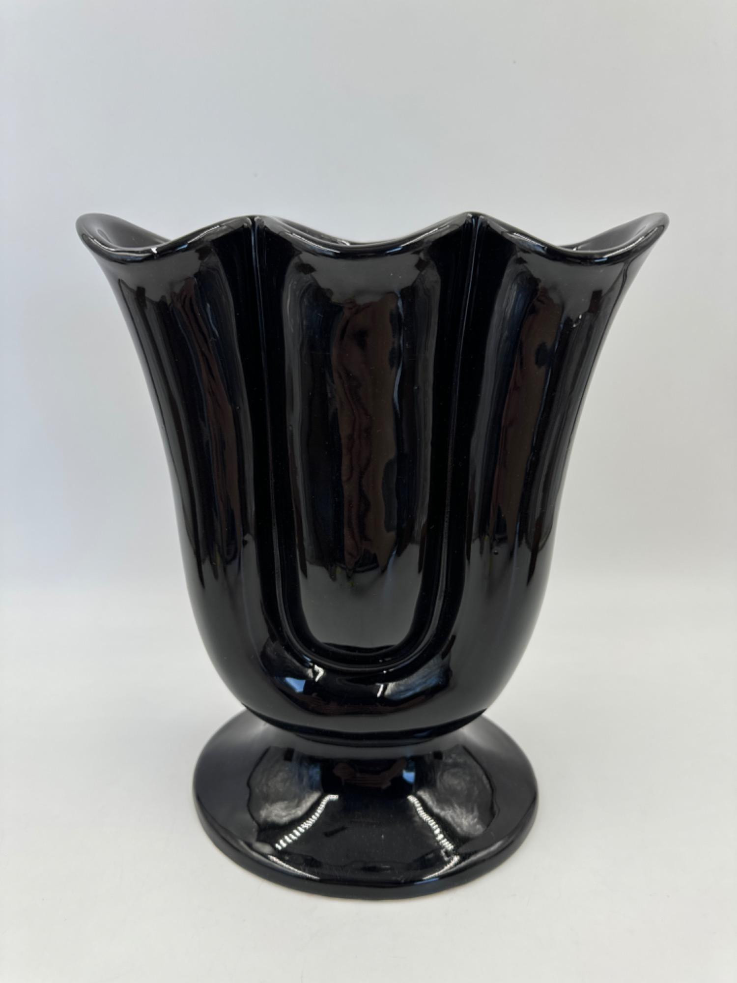 Lot # 98 - 1955 Mid Century Hull Pottery Black Trefoil Vase
