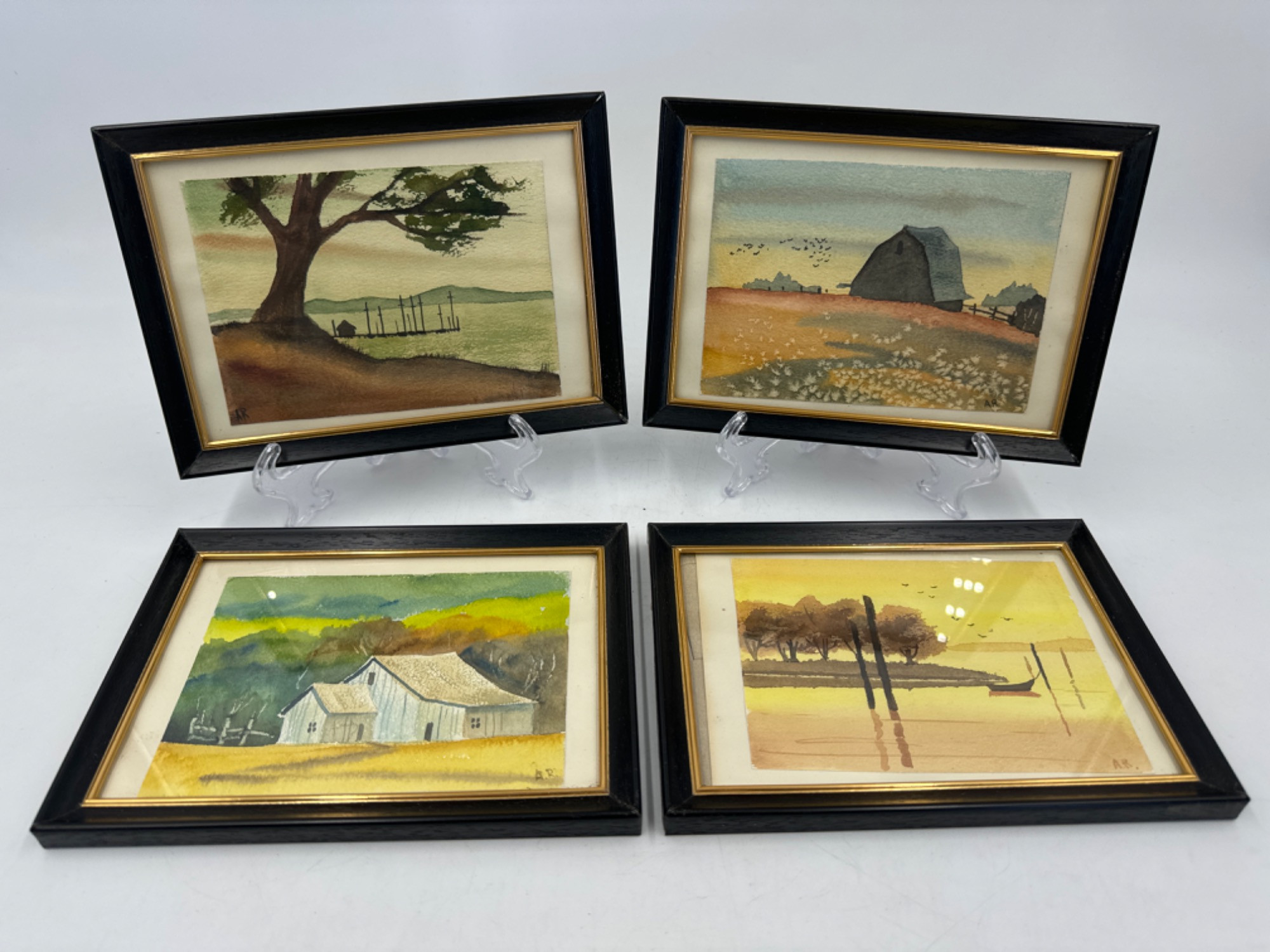 Lot # 163 - (4) Mini Framed Watercolor Landscape Paintings - Signed AR