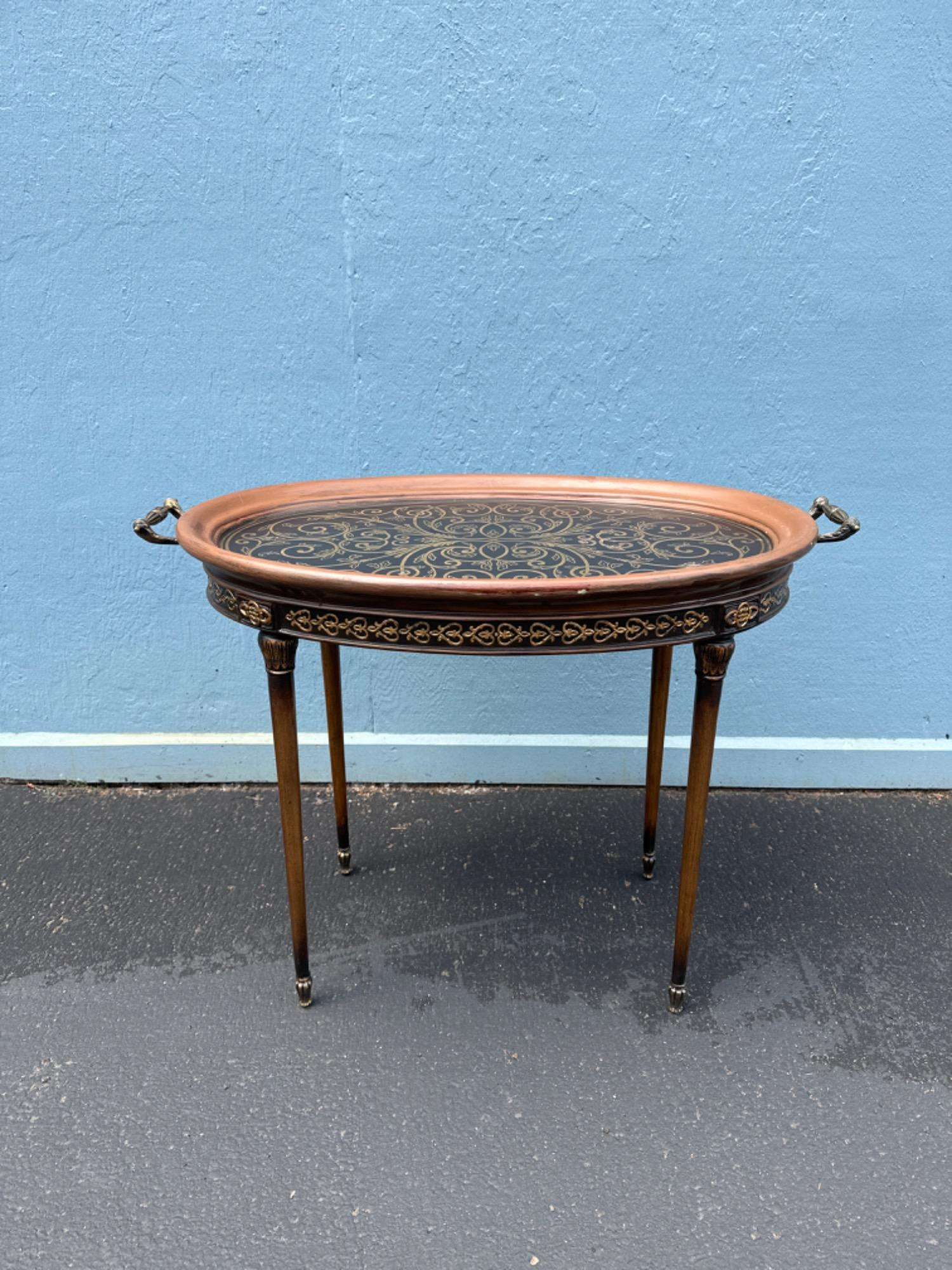 Vintage Venetian Style Faux Tray Top Table Ornate detail. This is one piece, table top does not remove Measures 34 handled handle, 20.5 inches wide by 26 inches tall to top of handle