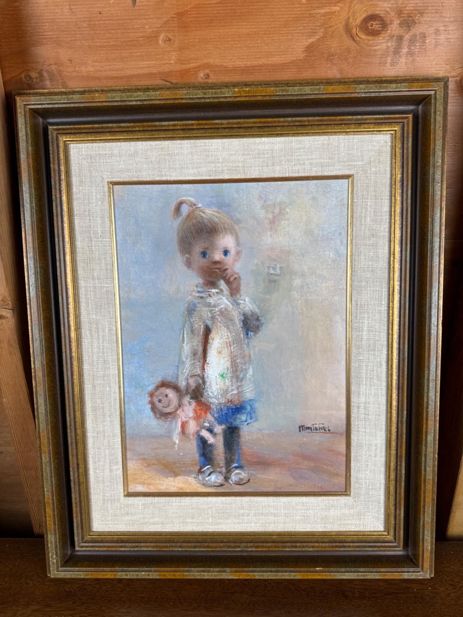 “Timidity” Signed Painting By José Montañés Frame measures: 24.25 x 20" Lots of wear to outer frame Possible repair?