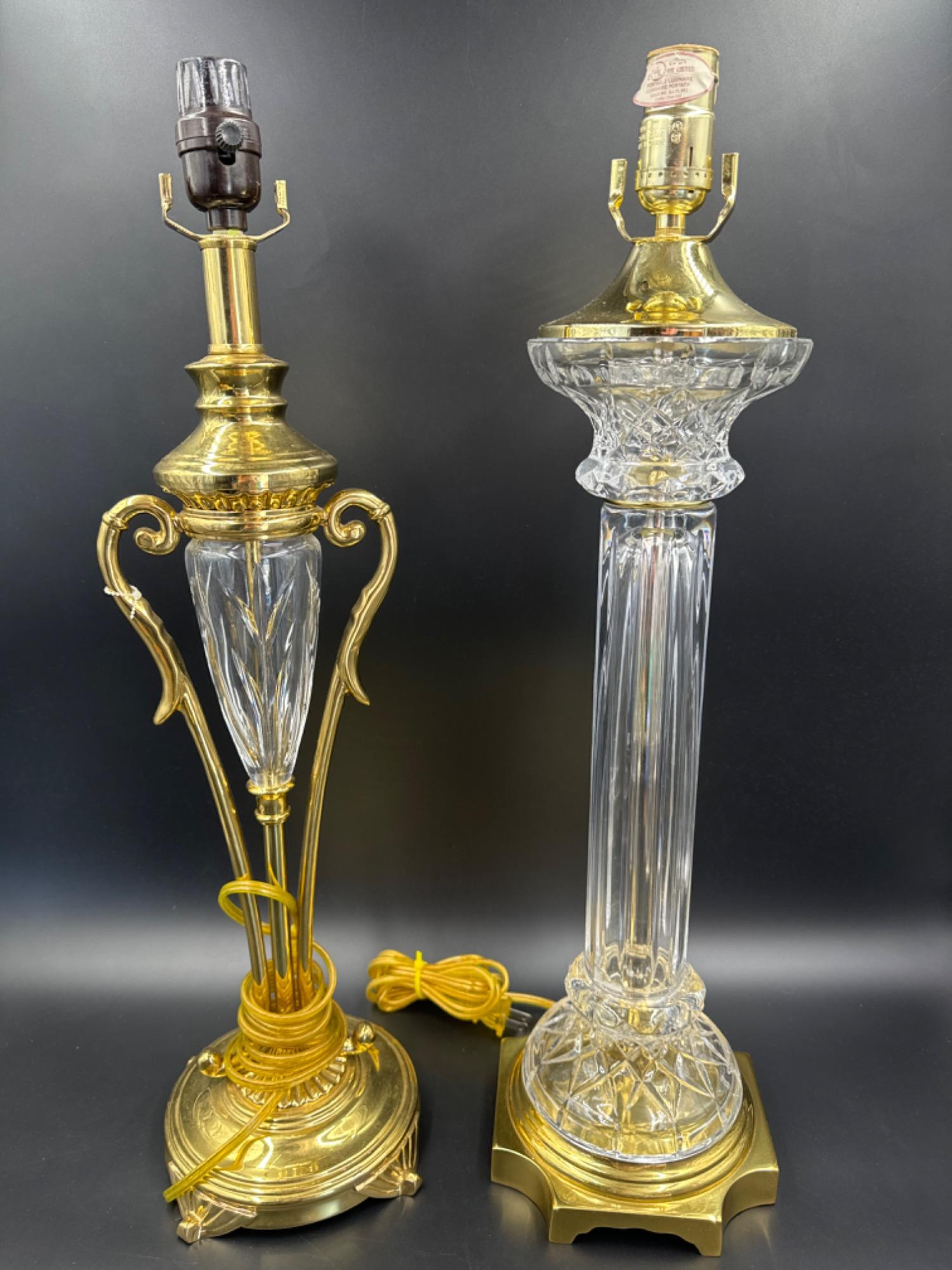 Vintage Ornate Crystal & Brass Table Lamps - 24"T Untested, well cared for and in great condition
