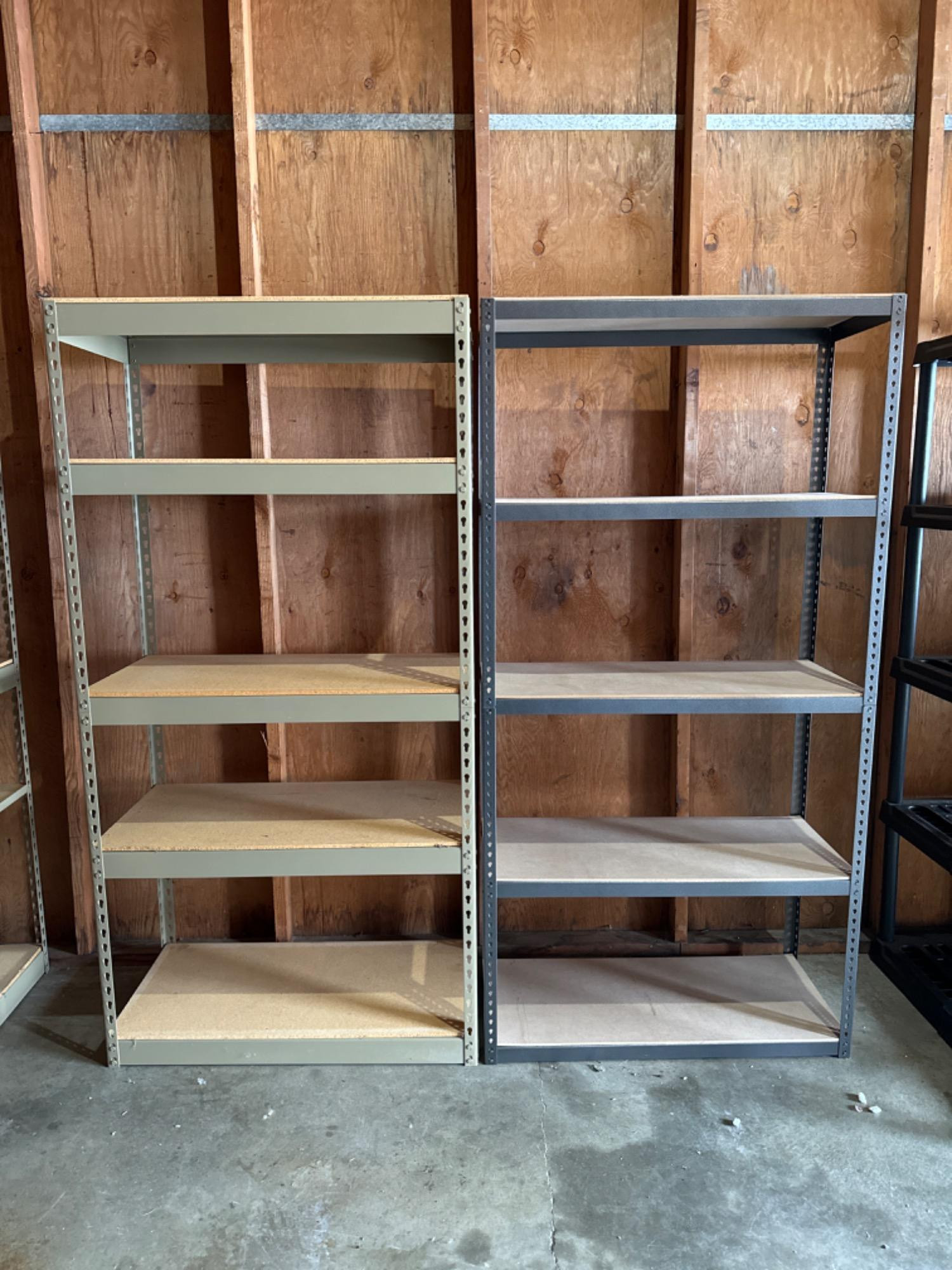 Lot # 62 - Pair of Adjustable Metal Shelves - Tan & Gray