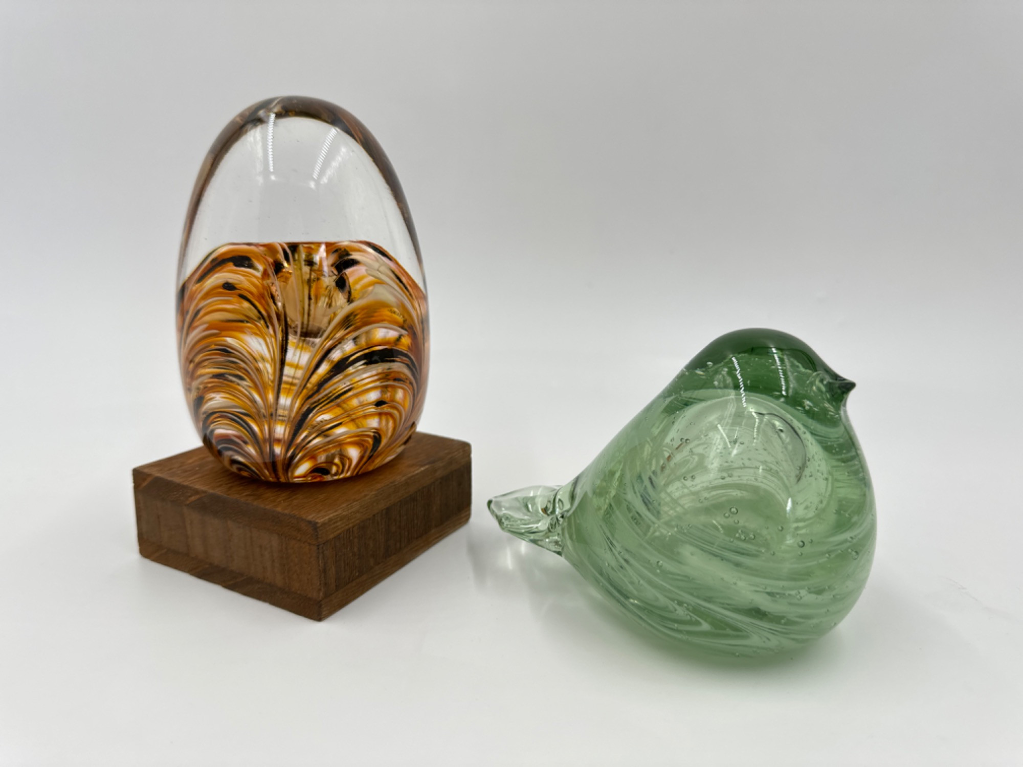 Lot # 104 - Blown Glass Art - Bubble & Pulled Feather Paperweight +