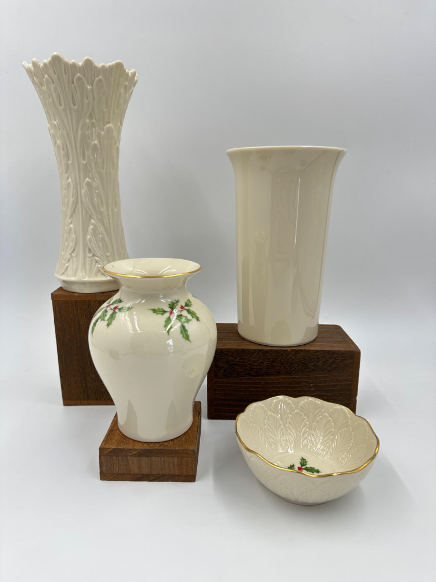 Lenox Special Christmas Holiday Presidential + Woodland Vase Vases measure 5.75 - 8.5" Bowl 4.5”D