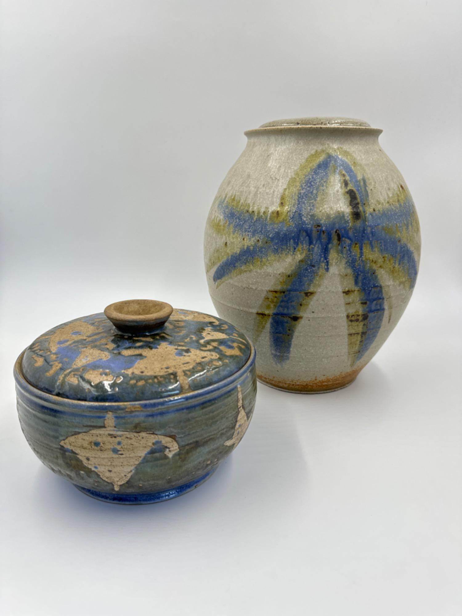 Vintage Neutrals Studio Art Pottery Lidded Vessels Carol Youngberg pottery pot - 7.25”D x 5.5”T 11.5”T - chip on lid