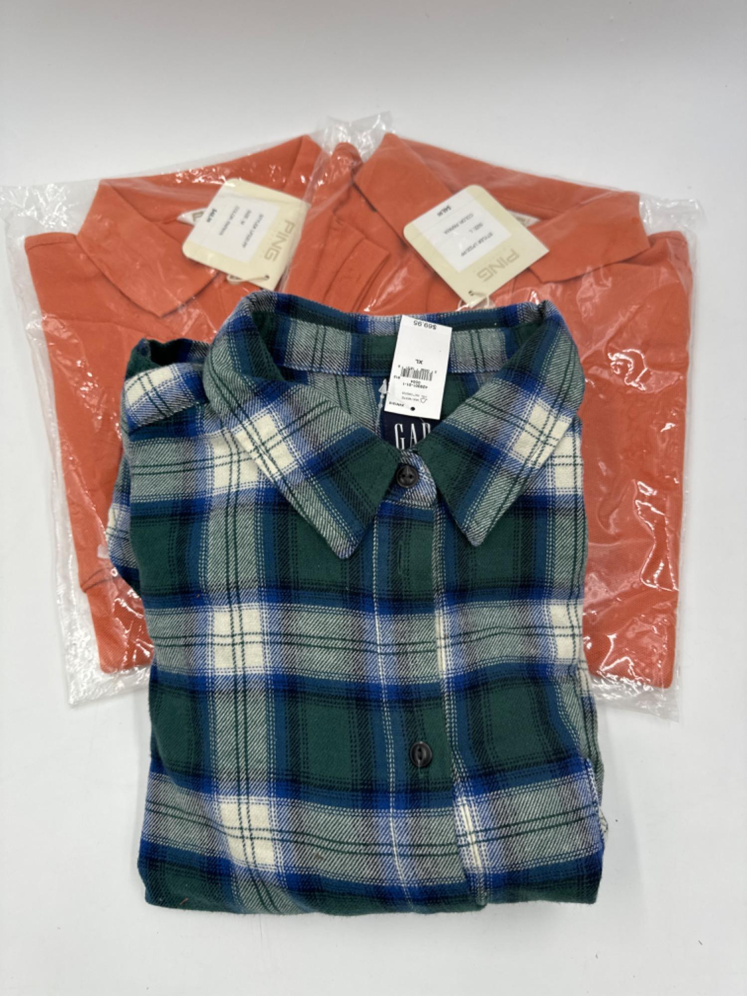 Lot # 140 - NWT Men's Gap XL Flannel Shirt - Ping M & L Polo Shirts