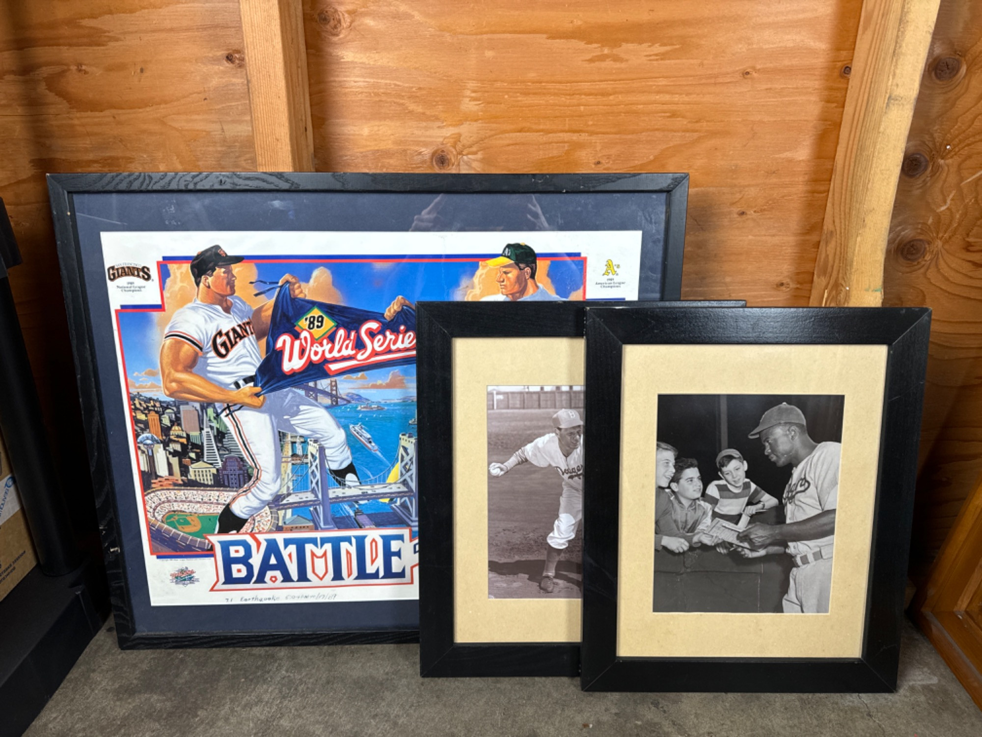Baseball Framed Wall Decor - Battle of the Bay World Series Smaller framed Dodger's players - 16.25 x 13.75" Battle of the Bay frame - 25.25 x 21.25" Wear to black on the frames