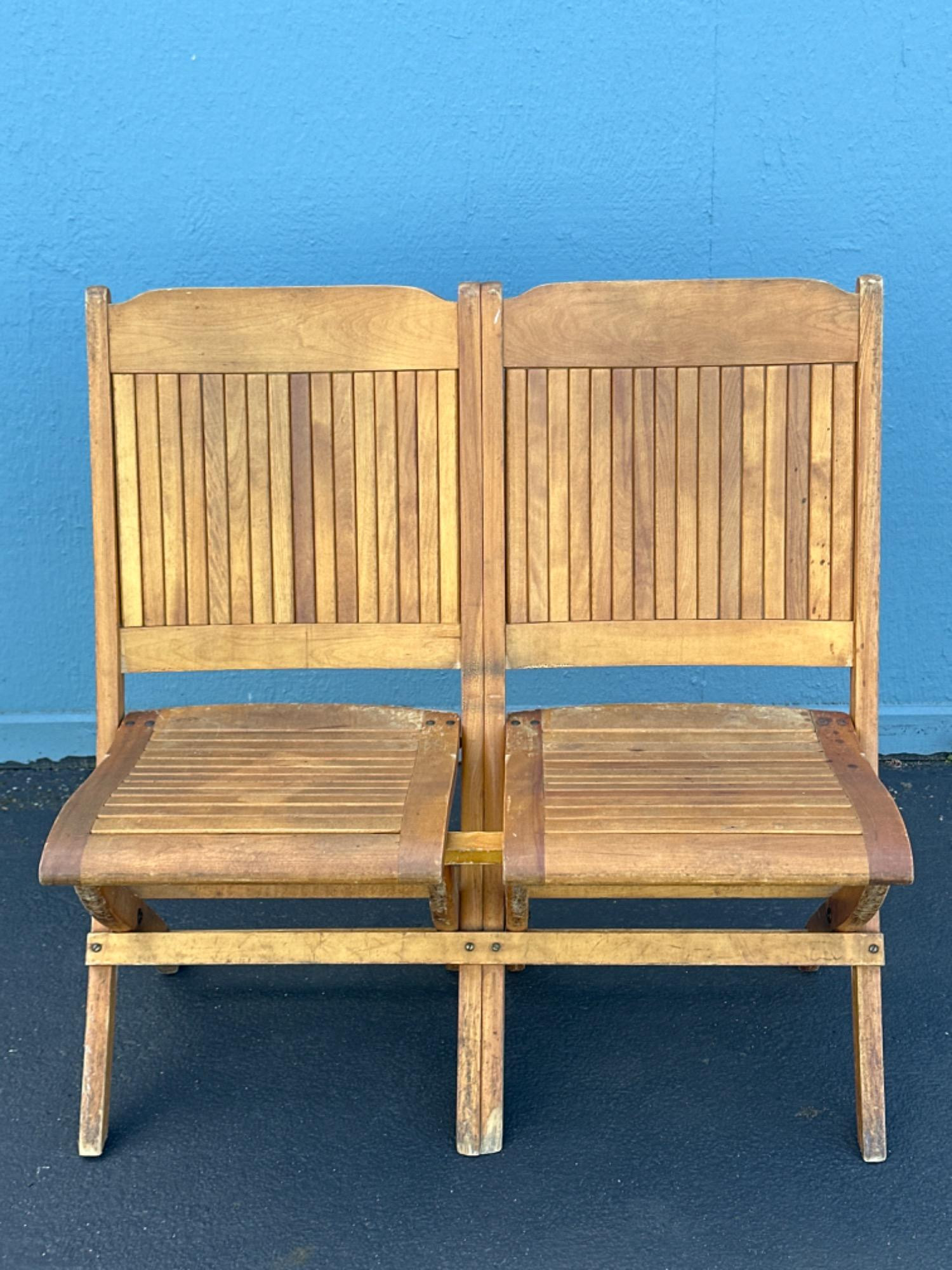Lot # 155 - Antique Vintage Folding Wood Slat 2 Seat Chairs #2