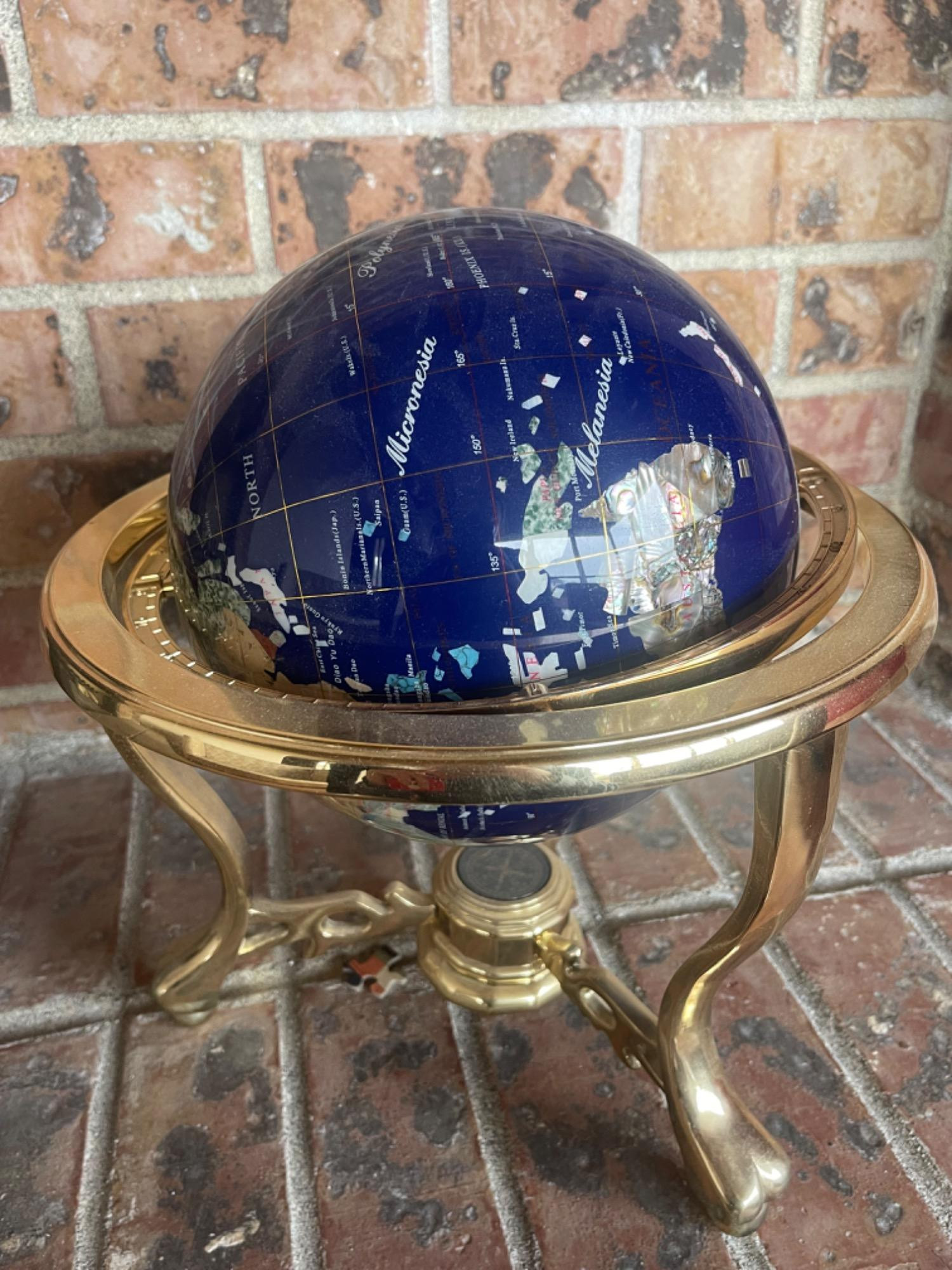 Lot # 33 - Lapis World Globe On Brass Stand