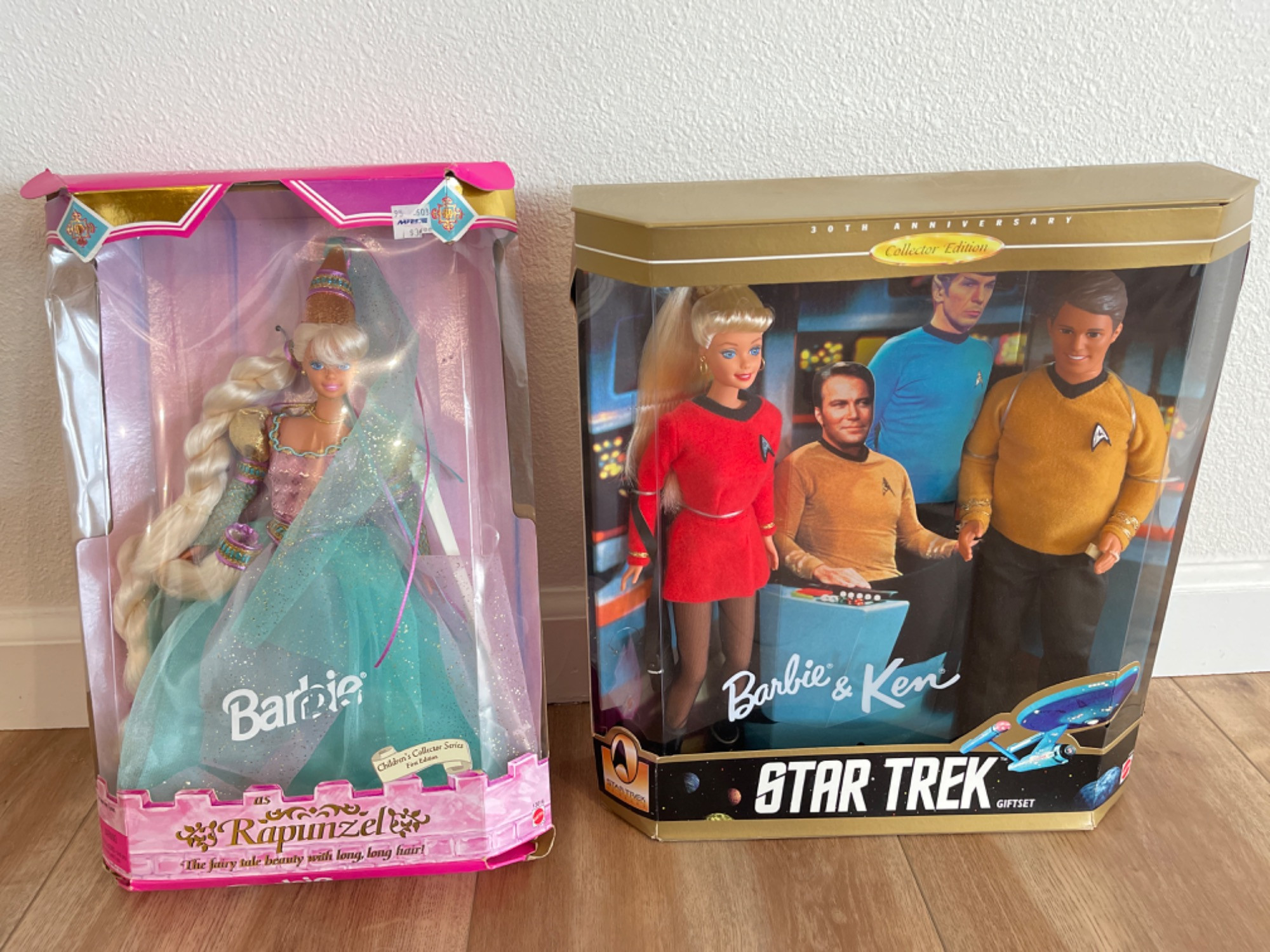 Barbie Rapunzel box is pretty damaged, but inside contents in great condition. Star Trek box is in great condition and appears to have never been opened. Inside contents in great condition.