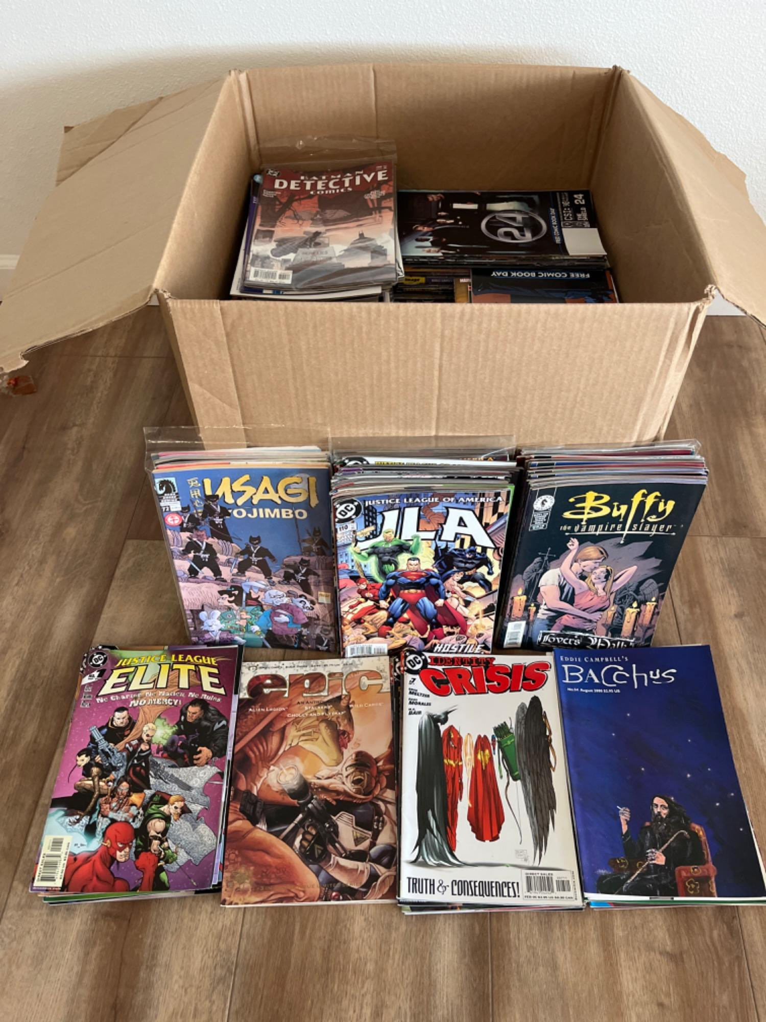 Lot # 72 - Misc Comic Book Box - Buffy, Justice League, Epic, Bacchus, Etc.