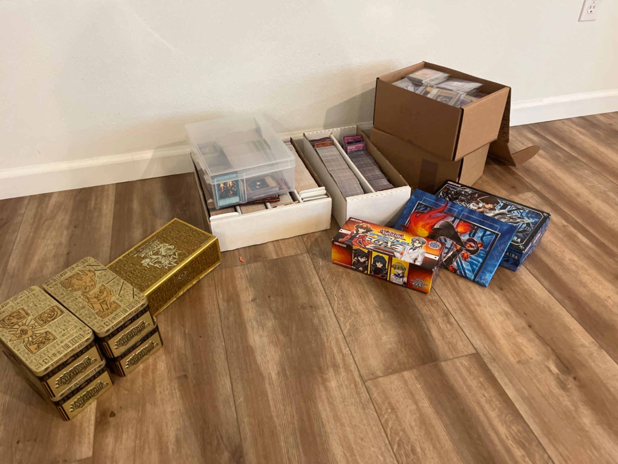 Loads of Yu-Gi-Oh cards of all colors as well as a board.