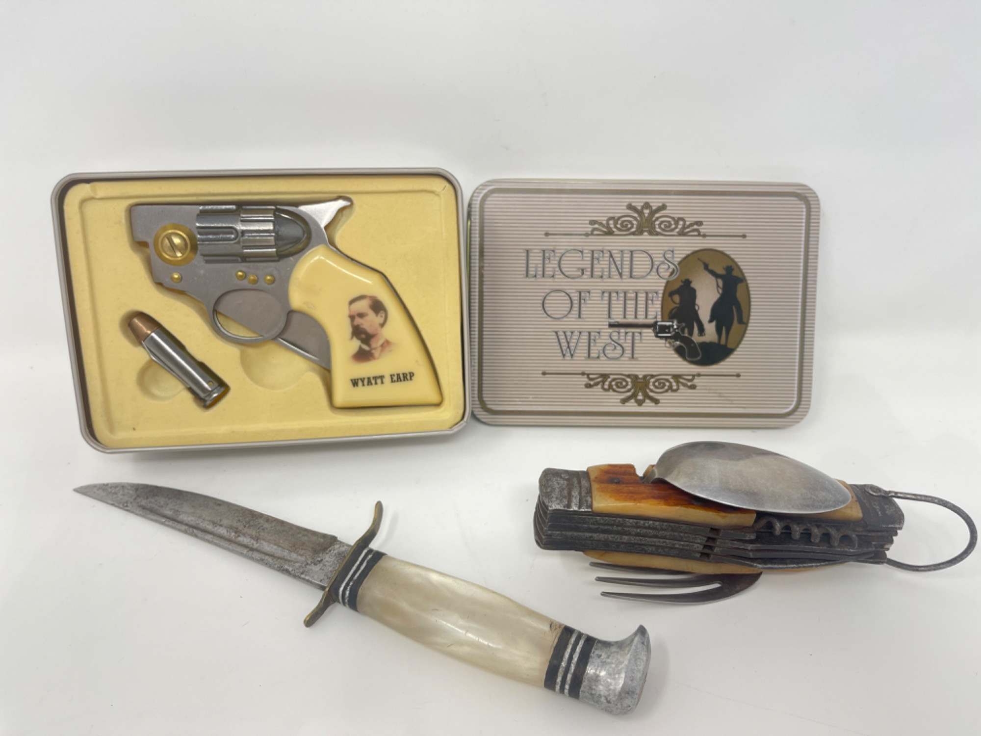 Lot # 83 - Collectible Knives! - Legends Of The West Gun Knife, Hobo Knife, +