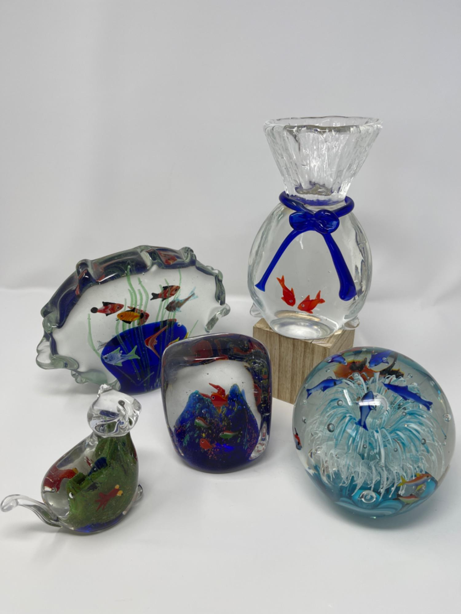 Lot # 9 - Multiple Fish Art Glass Paper Weights