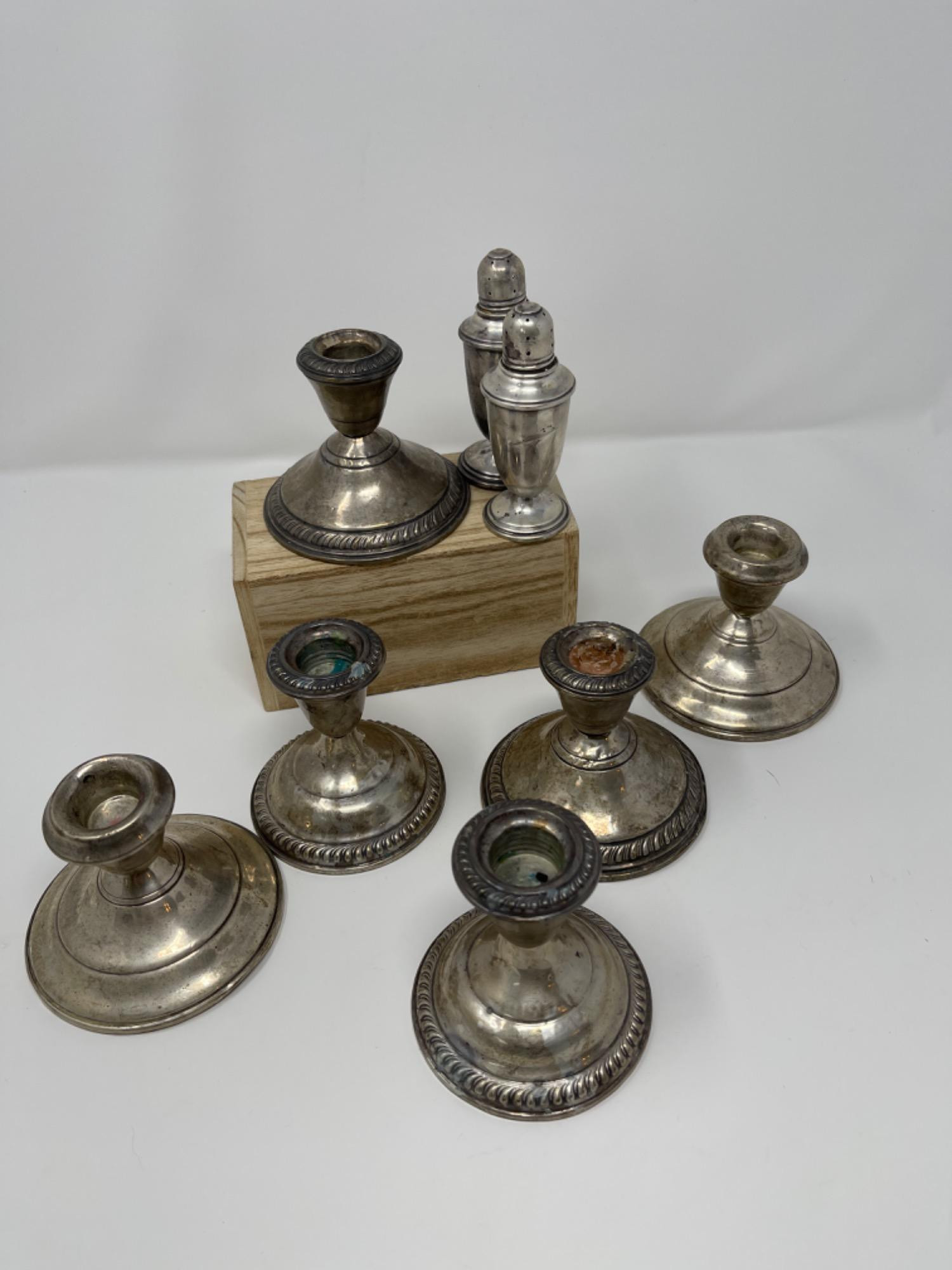 Lot # 55 - Weighted Sterling Candlesticks and S &P Shakers