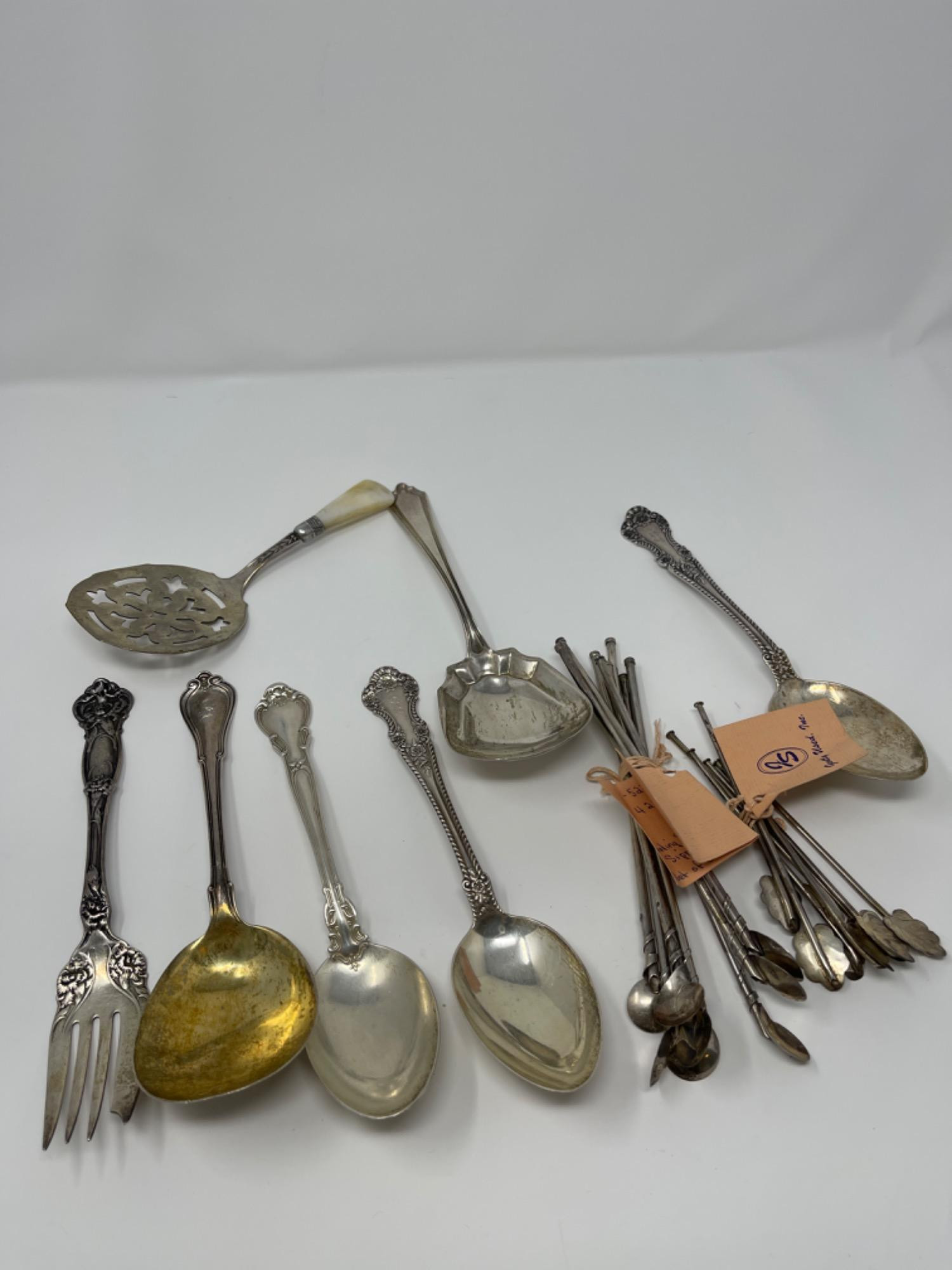Sterling serving pieces and sterling sippers. Please see weight on scale. Each piece was weighed.