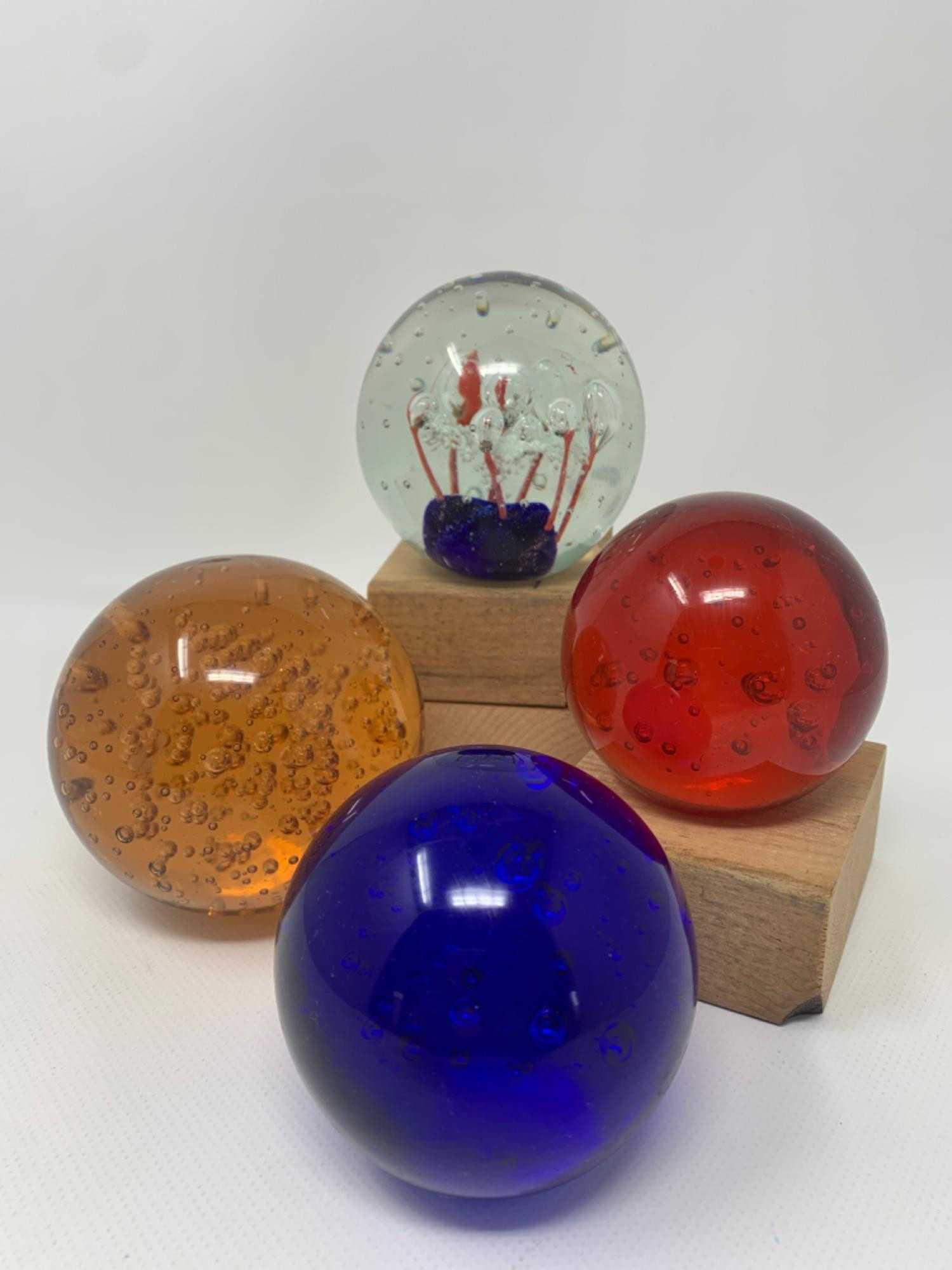 Lot # 67 - Colorful Bubble Glass Paperweights, One filled