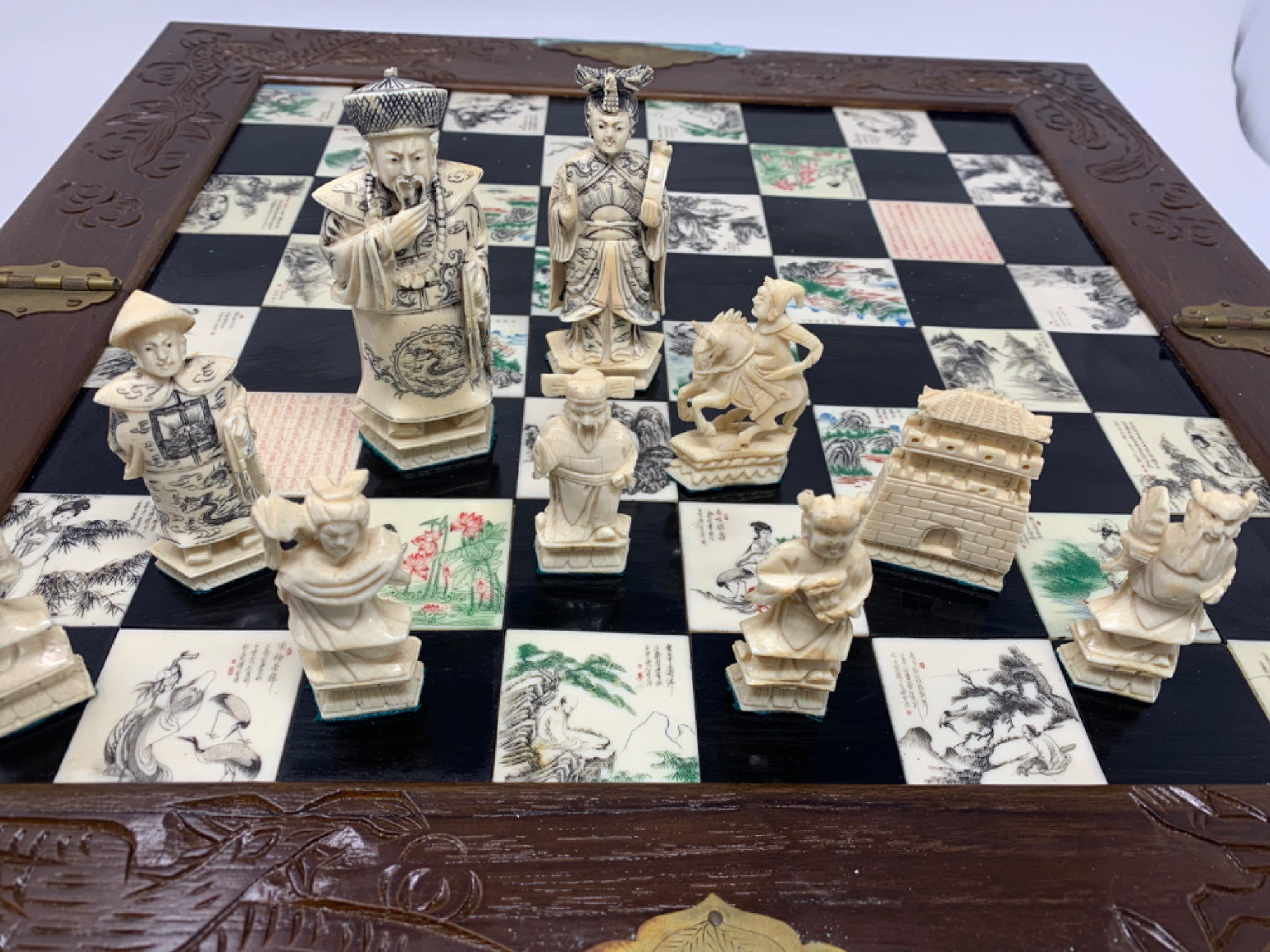 Lot # 92 - Unique Travel Chess Set with Bone Like Pieces