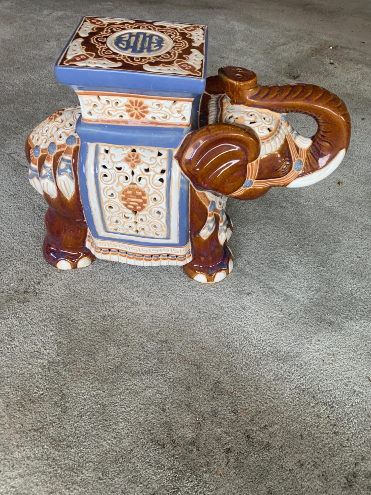 Lot # 116 - Asian Motif Elephant Ceramic Plant Stand/Stool -NIB