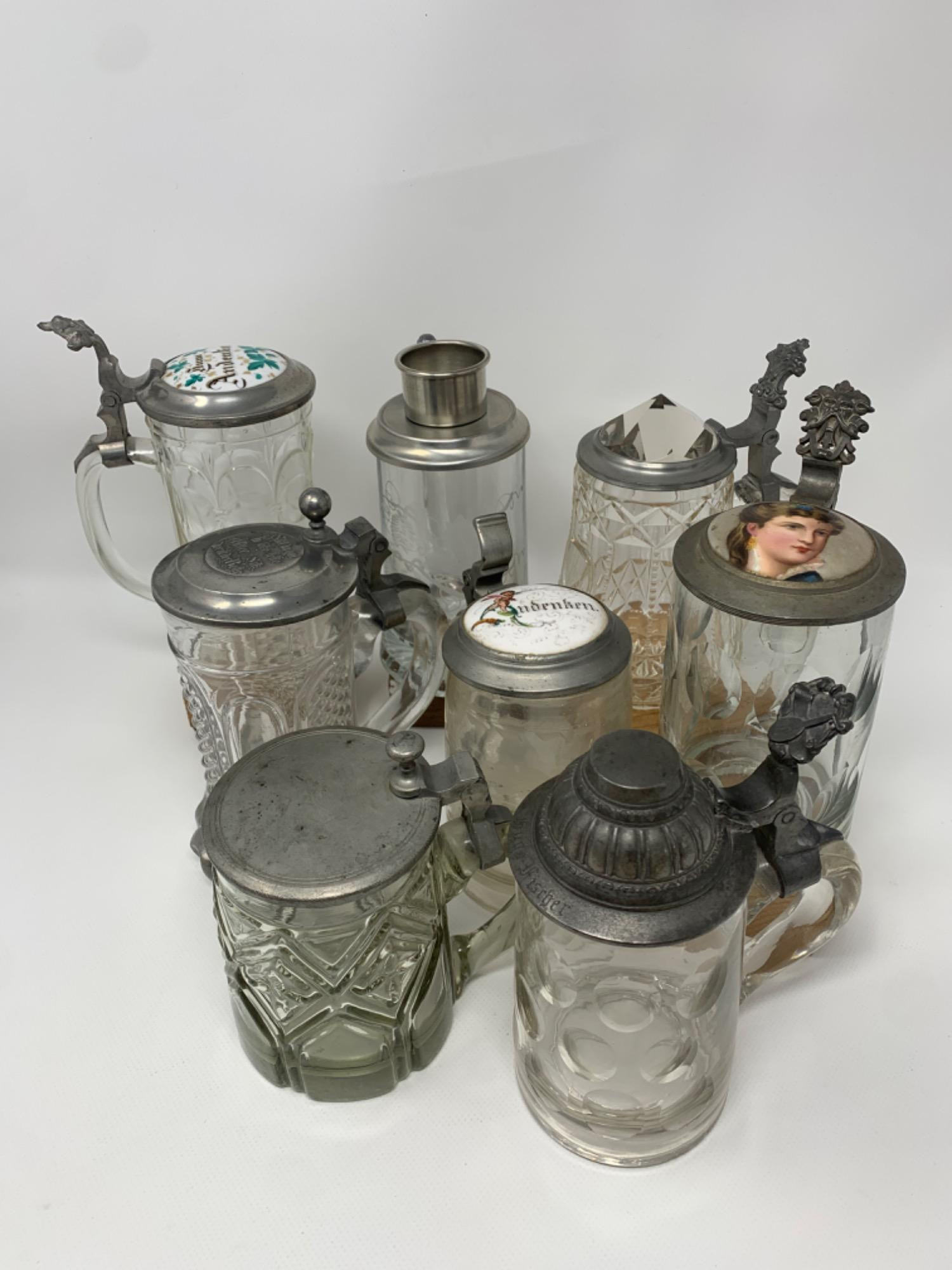 Lot # 144 - Eight Vintage Glass and Pewter Beer Steins