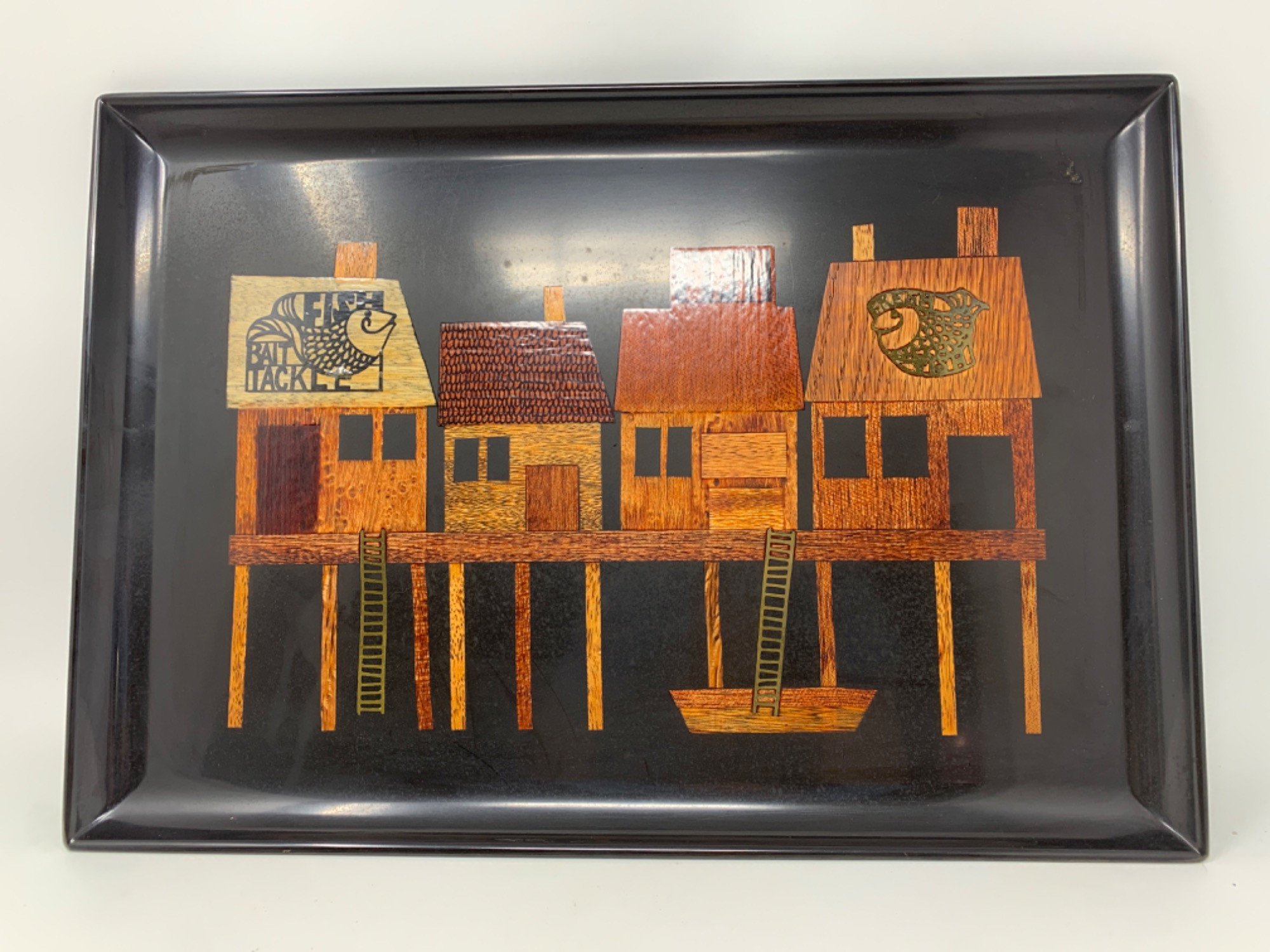 Lot # 184 - Couroc Lacquered Mid-Century Tray-Fishing Pier