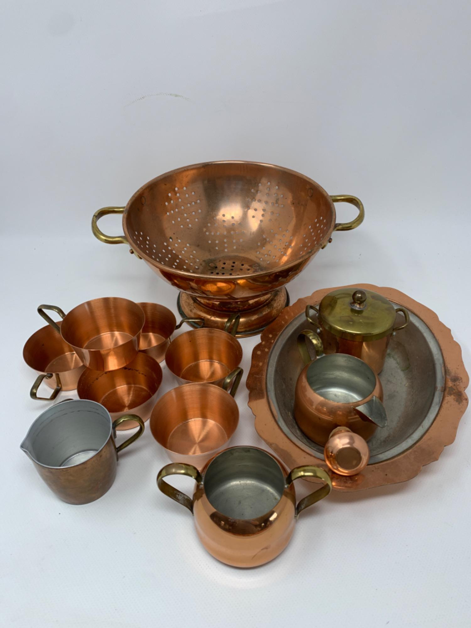 Large collection of copper pots and kitchen items. Sauté pan and stock pot or Paul Revere copper. Set of copper canisters, bowls, cups and more. See pics for details.